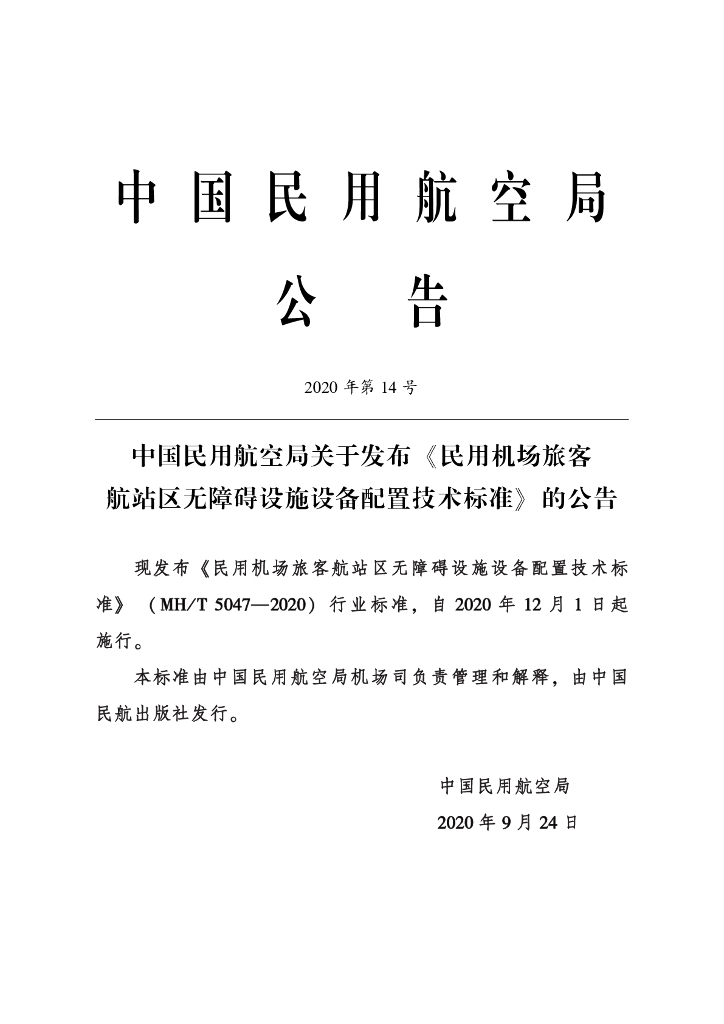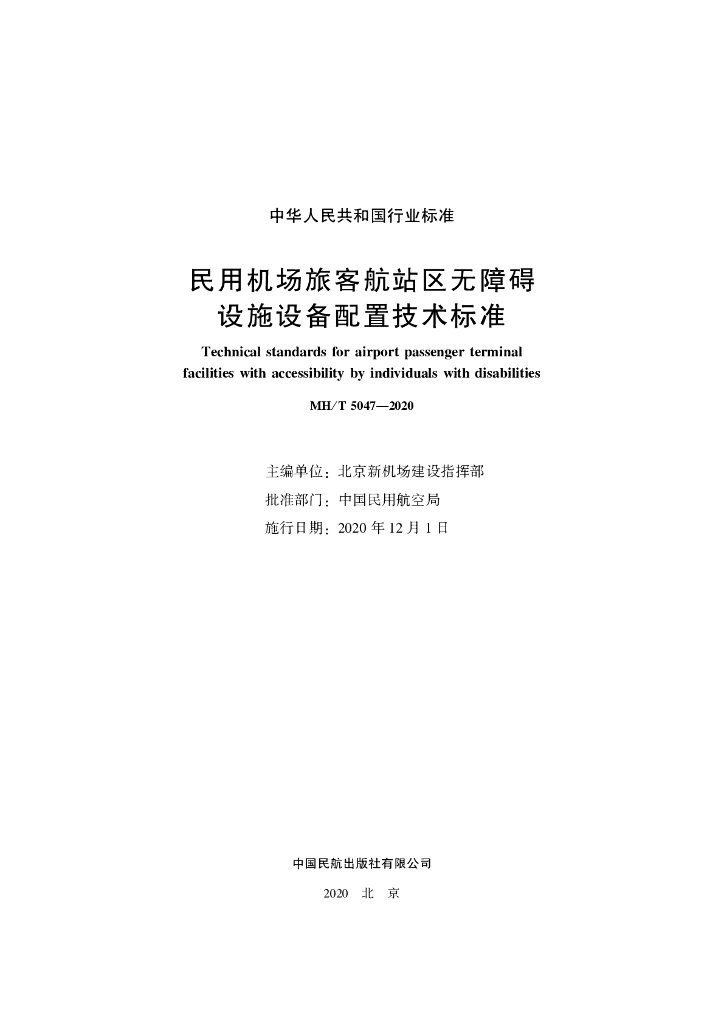 MH/T 5047-2020 民用机场旅客航站区无障碍设施设备配置技术标准