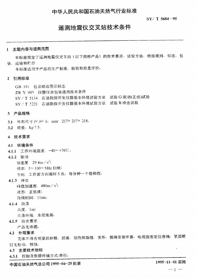 SY/T 5684-1995 遥测地震仪交叉站技术条件