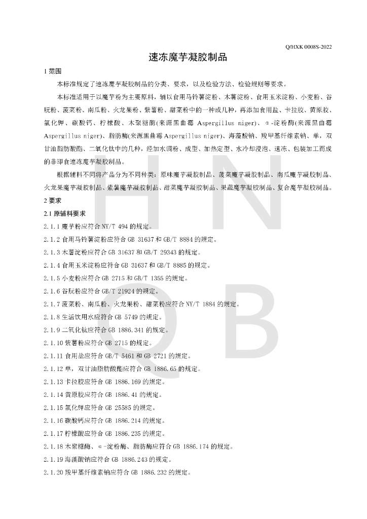 Q/HXK 0008S-2022 速冻魔芋凝胶制品