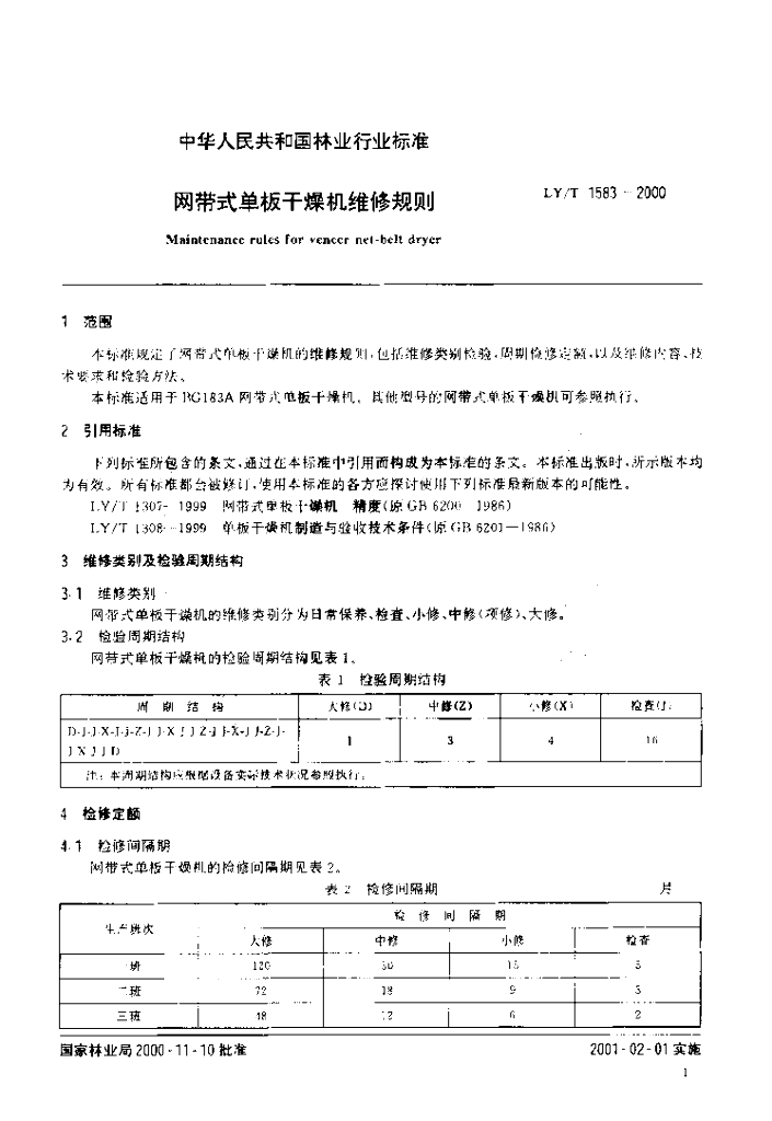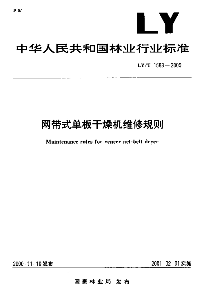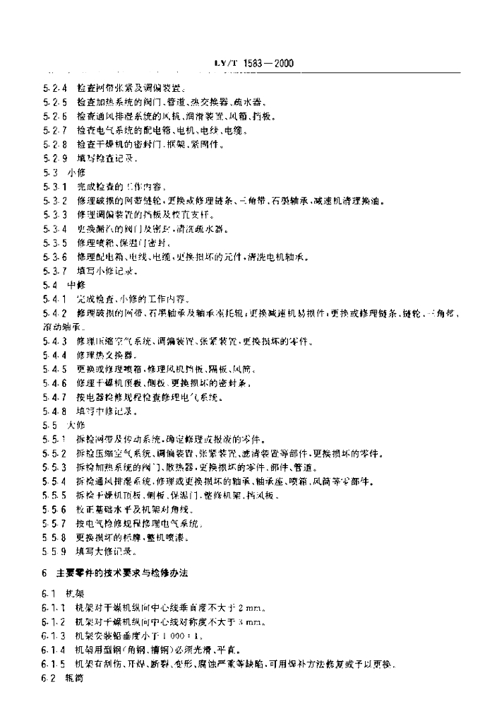 LY/T 1583-2000 网带式单板干燥机维修规则