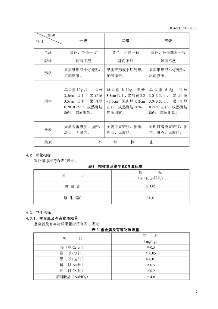 DB46/T 70-2006 黄灯笼辣椒