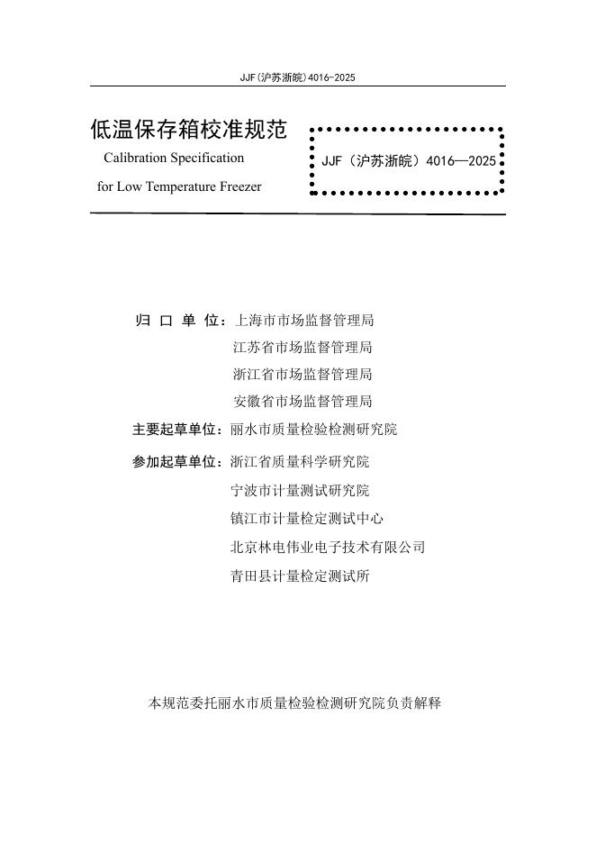 JJF(沪苏浙皖)4016-2025 低温保存箱校准规范