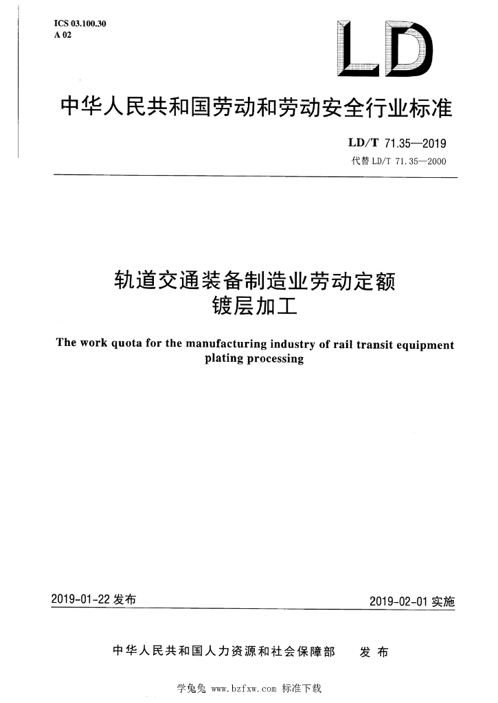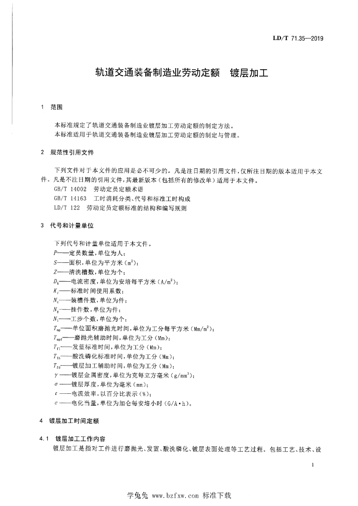 LD/T 71.35-2019 轨道交通装备制造业劳动定额 镀层加工
