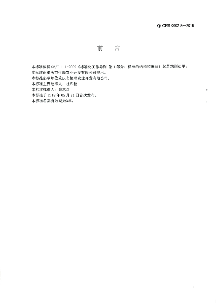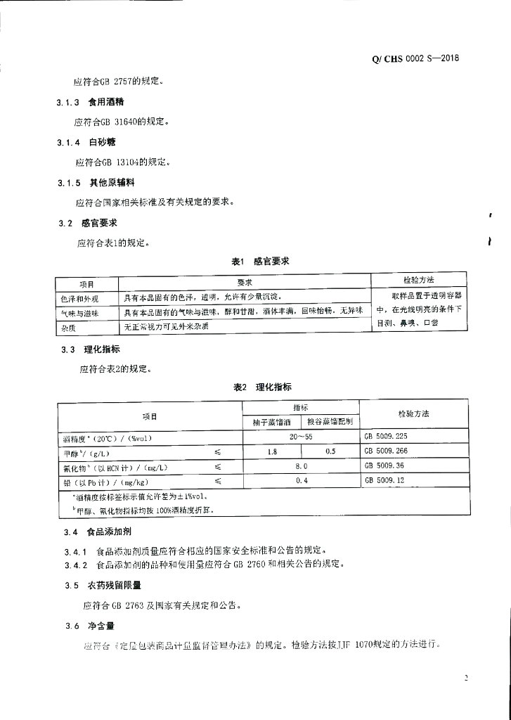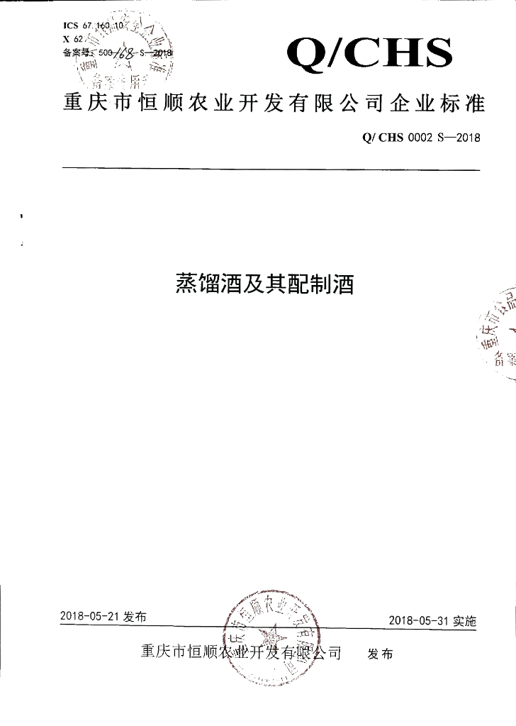 Q/CHS 0002S-2018 蒸馏酒及其配制酒