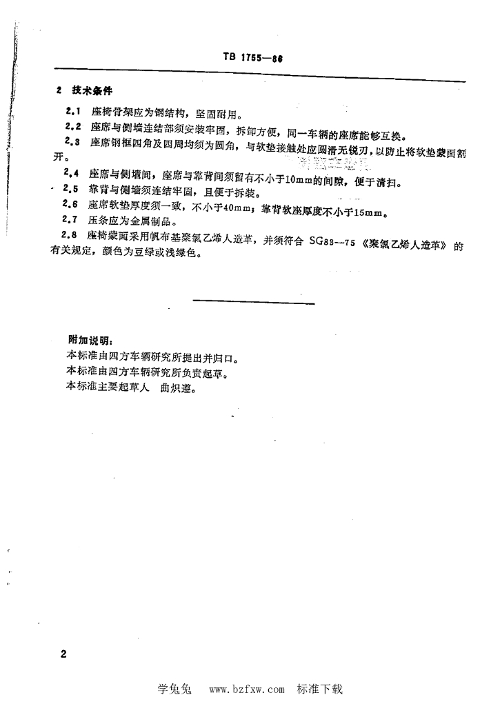 TB/T 1755-1986 硬座车座椅尺寸参数及技术条件