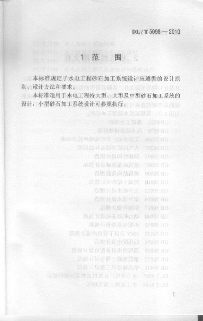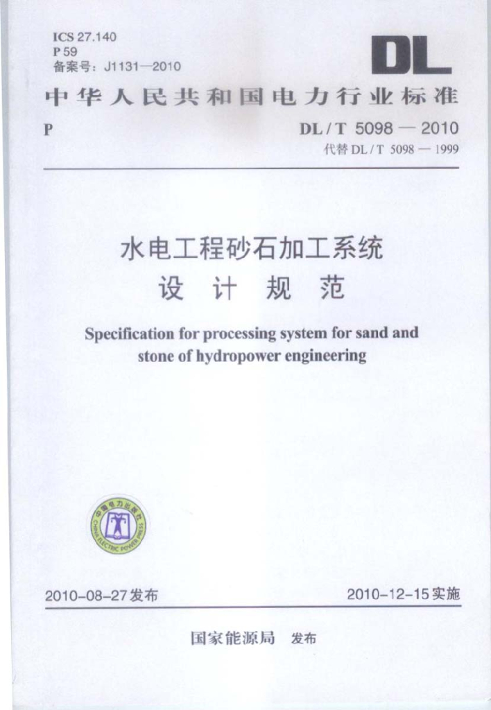 DL/T 5098-2010 水电工程砂石加工系统设计规范