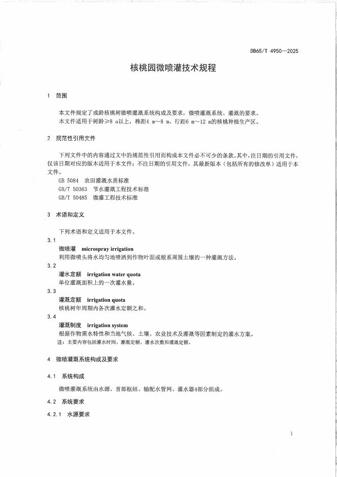 DB65/T 4950-2025 核桃园微喷灌技术规程