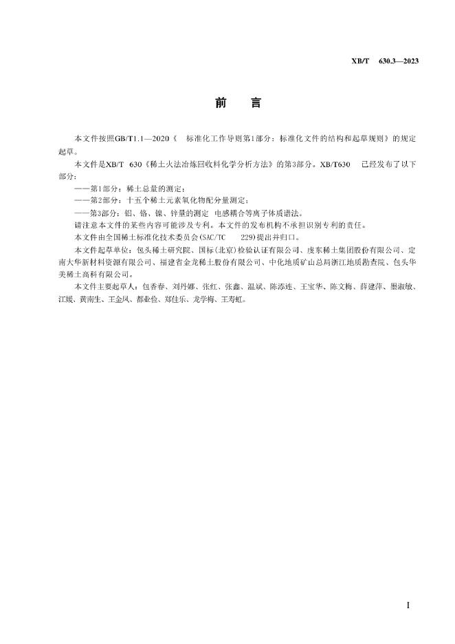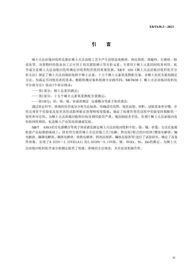 XB/T 630.3-2023 稀土火法冶炼回收料化学分析方法 第3部分:铝、铬、镍、锌量的测定 电感耦合等离子体质谱法