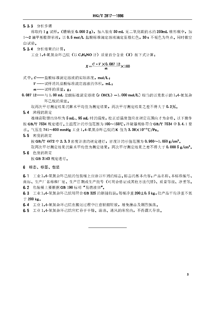 HG/T 2817-1996 工业1,4-氧氮杂环己烷(吗啉)