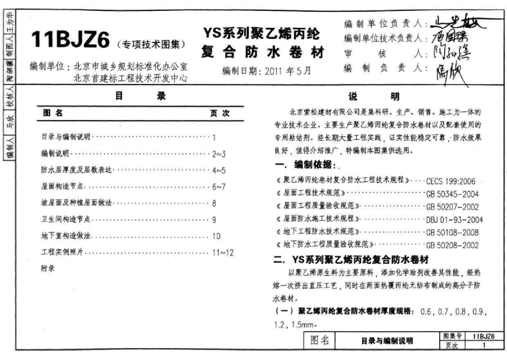 11BJZ6 YS系列聚乙烯丙纶复合防水卷材图集