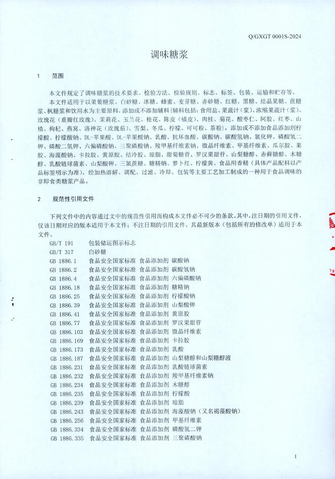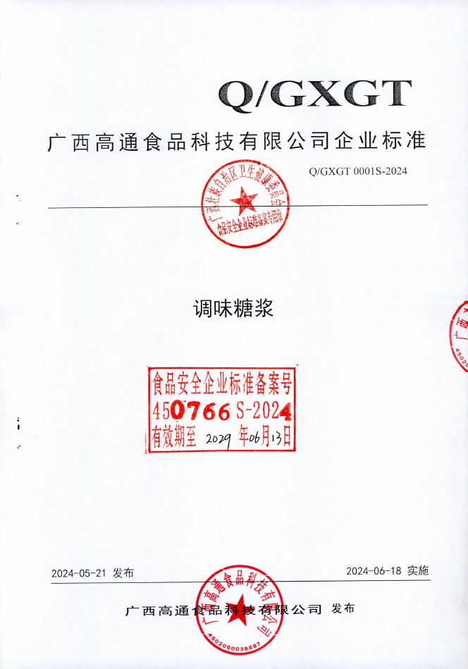 Q/GXGT 0001S-2024 调味糖浆 广西高通食品科技有限公司 (企业申请废止)