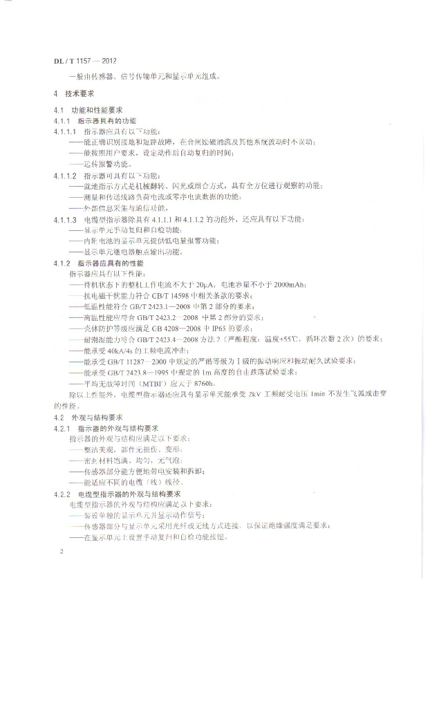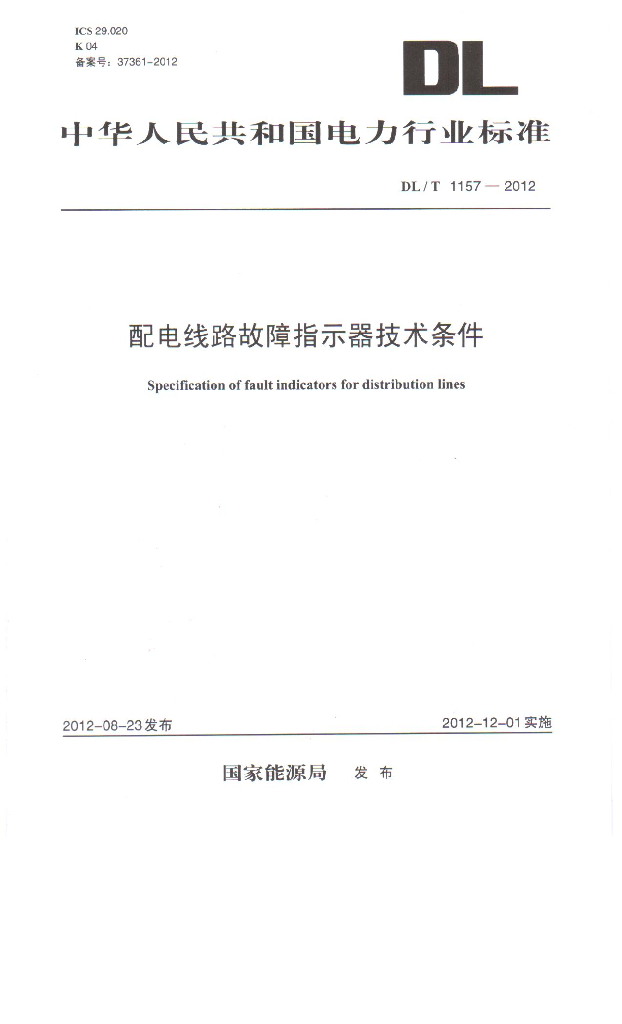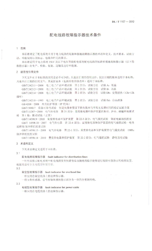 DL/T 1157-2012 配电线路故障指示器技术条件