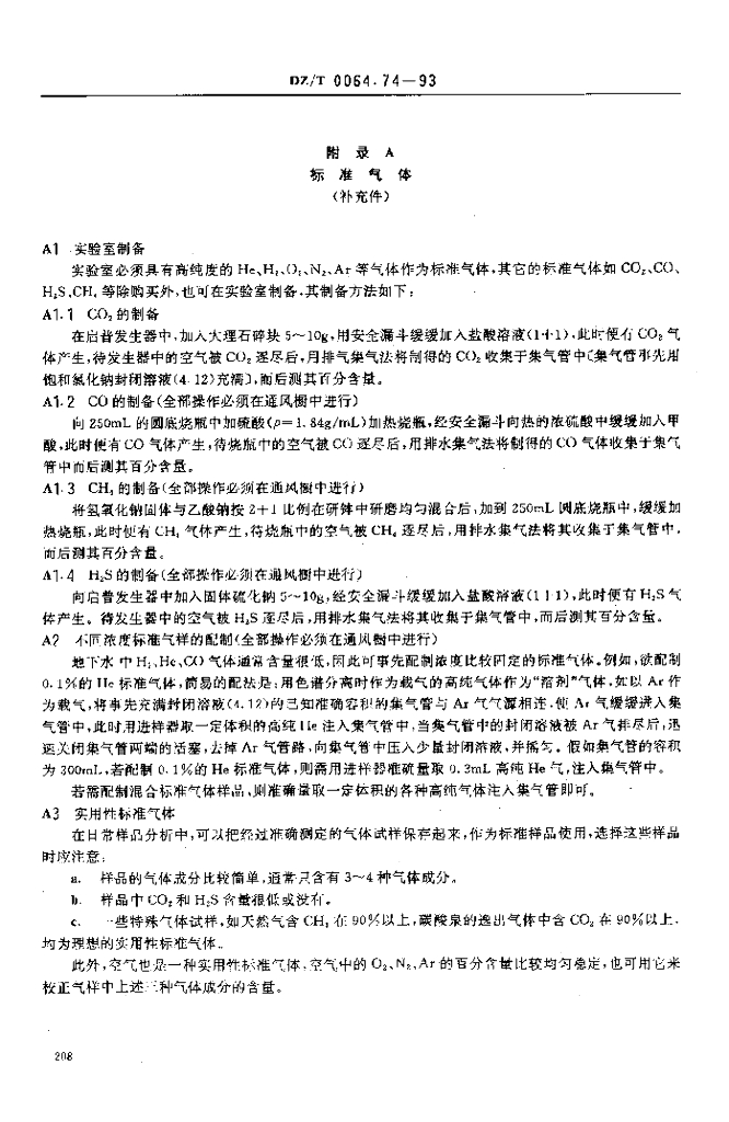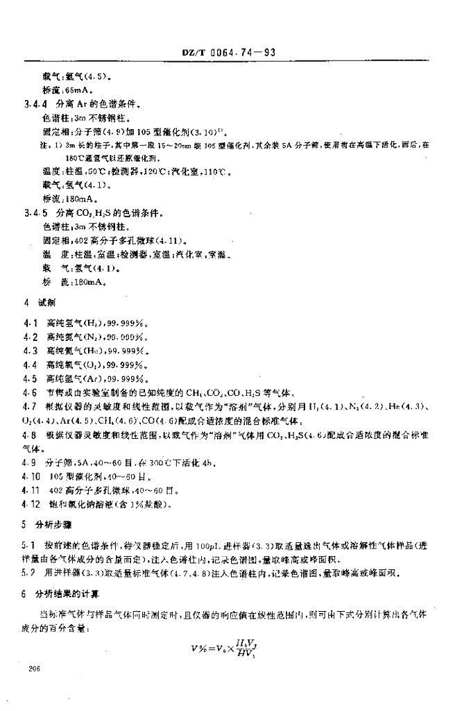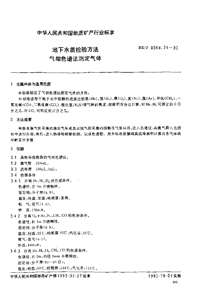DZ/T 0064.74-1993 地下水质检验方法 气相色谱法测定气体