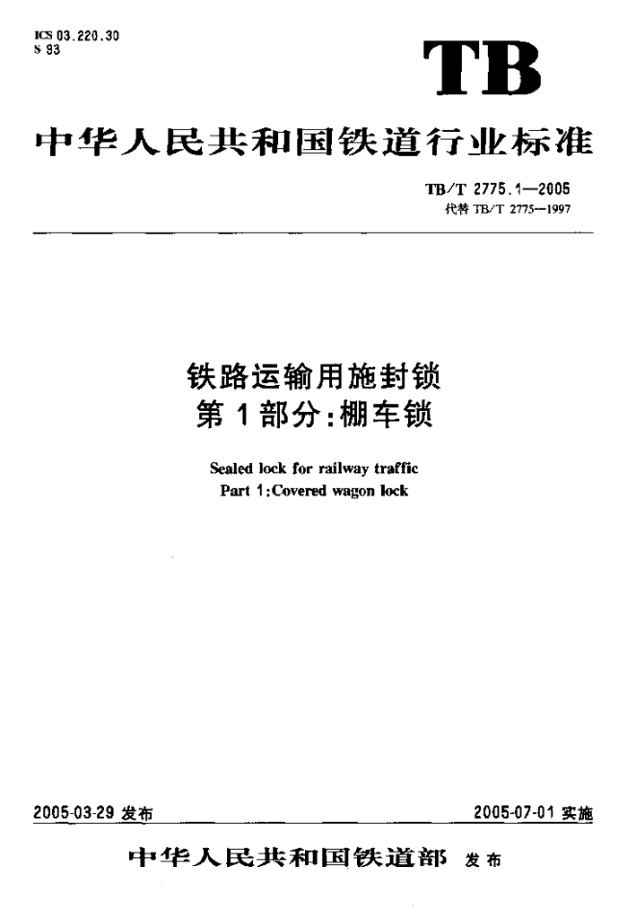 TB/T 2775-2005 铁路运输用施封锁(第1-3部分)