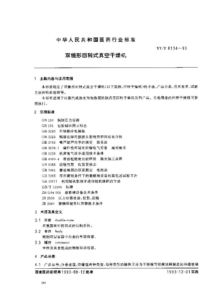 YY/T 0134-1993 双锥形回转式真空干燥机