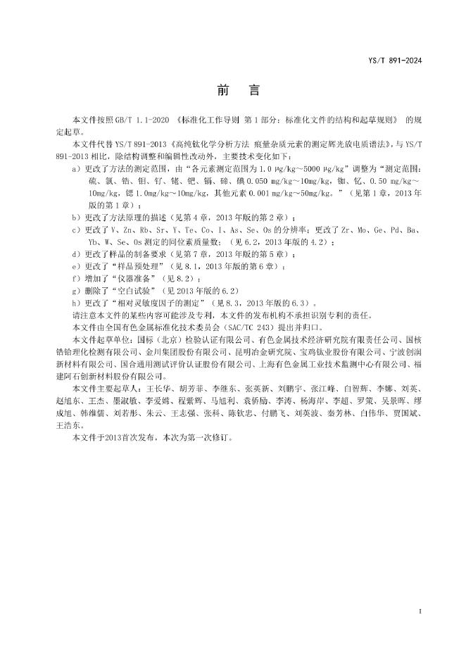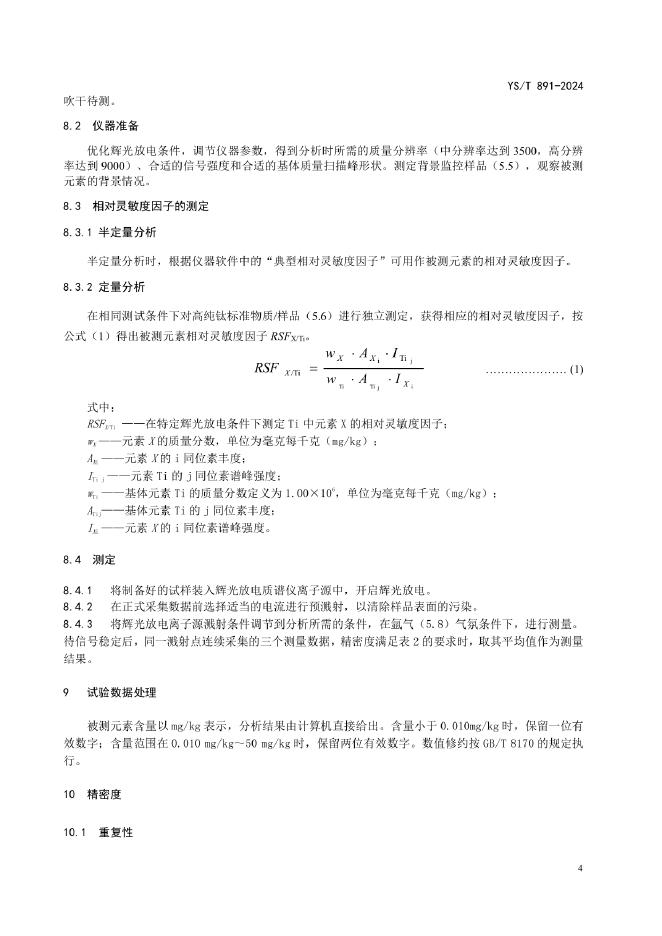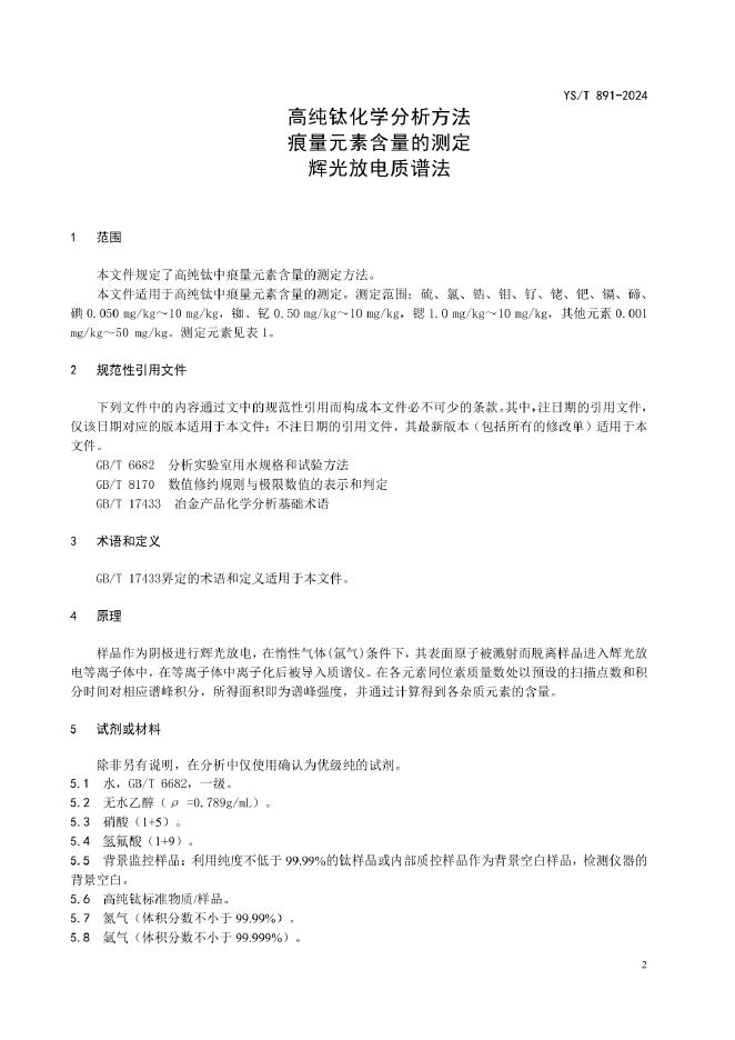 YS/T 891-2024 高纯钛化学分析方法 痕量元素含量的测定 辉光放电质谱法