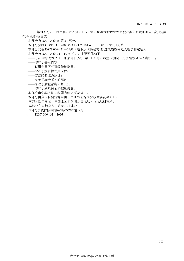 DZ/T 0064.31-2021 地下水质分析方法 第31部分:锰量的测定过硫酸铵分光光度法