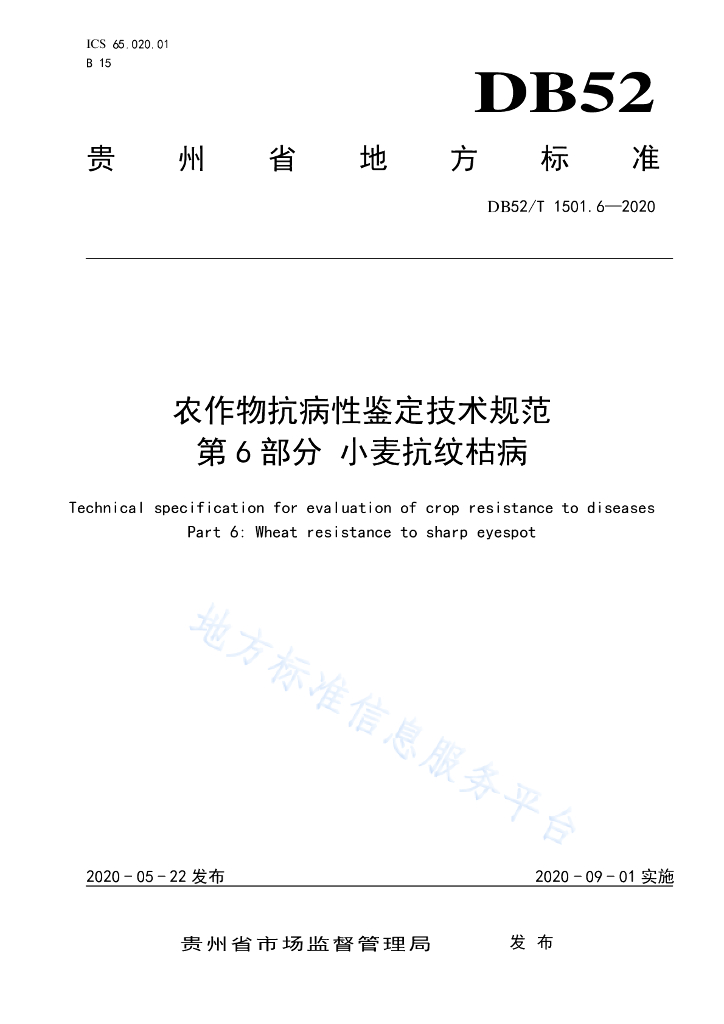 DB52/T 1501.6-2020 农作物抗病性鉴定技术规范 第6部分:小麦抗纹枯病