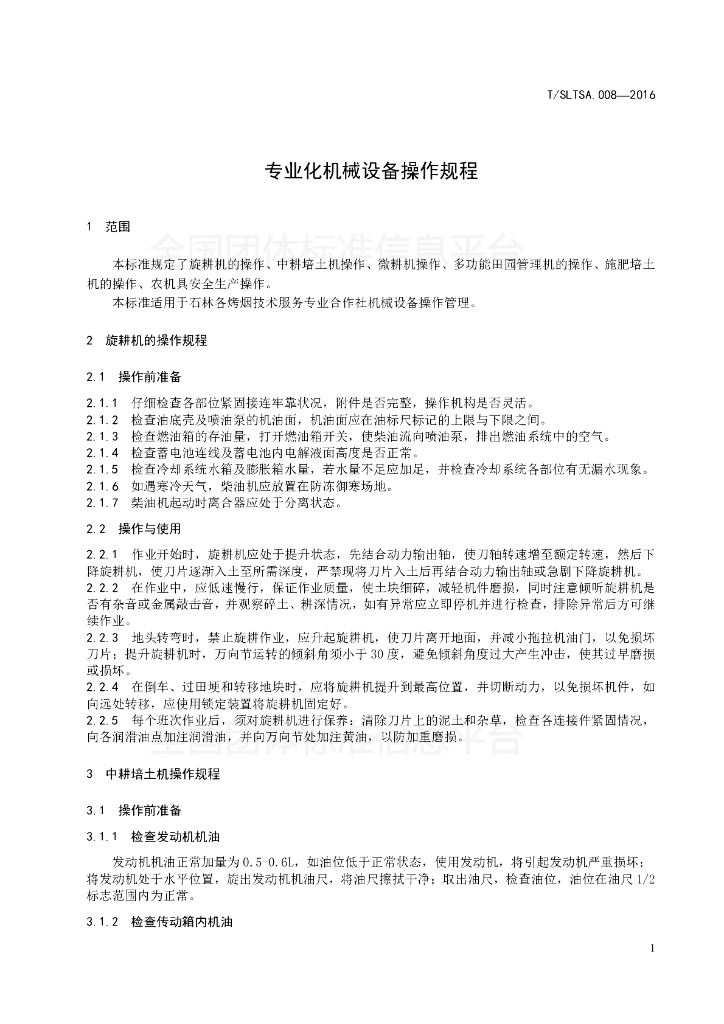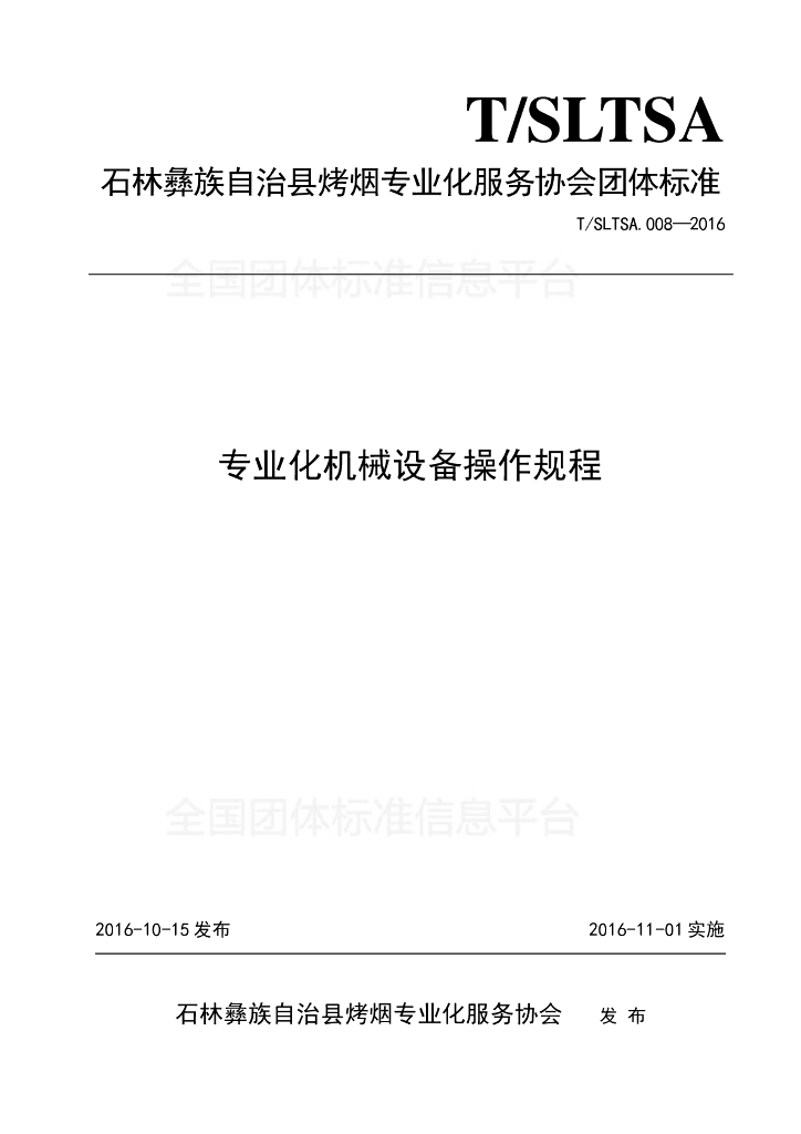 T/SLTSA 008-2016 专业化机械设备操作规程