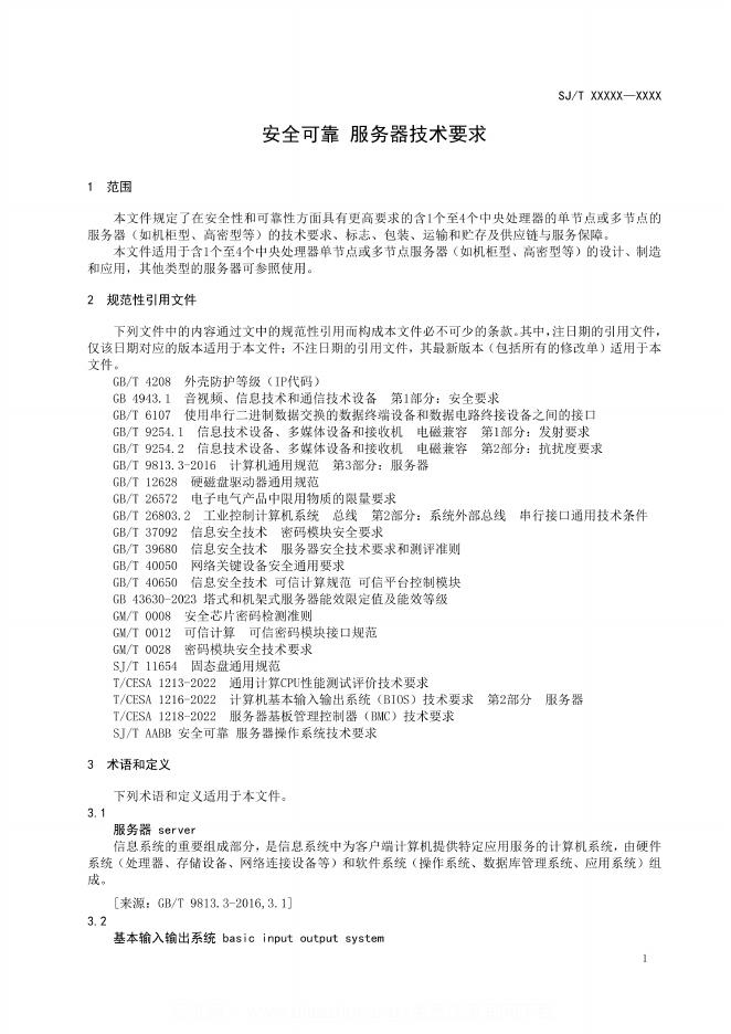 SJ/T 11941-2024 安全可靠 服务器技术要求