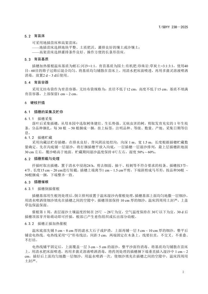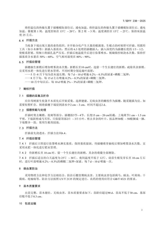 T/SDYY 238-2025 石榴容器扦插育苗技术规程
