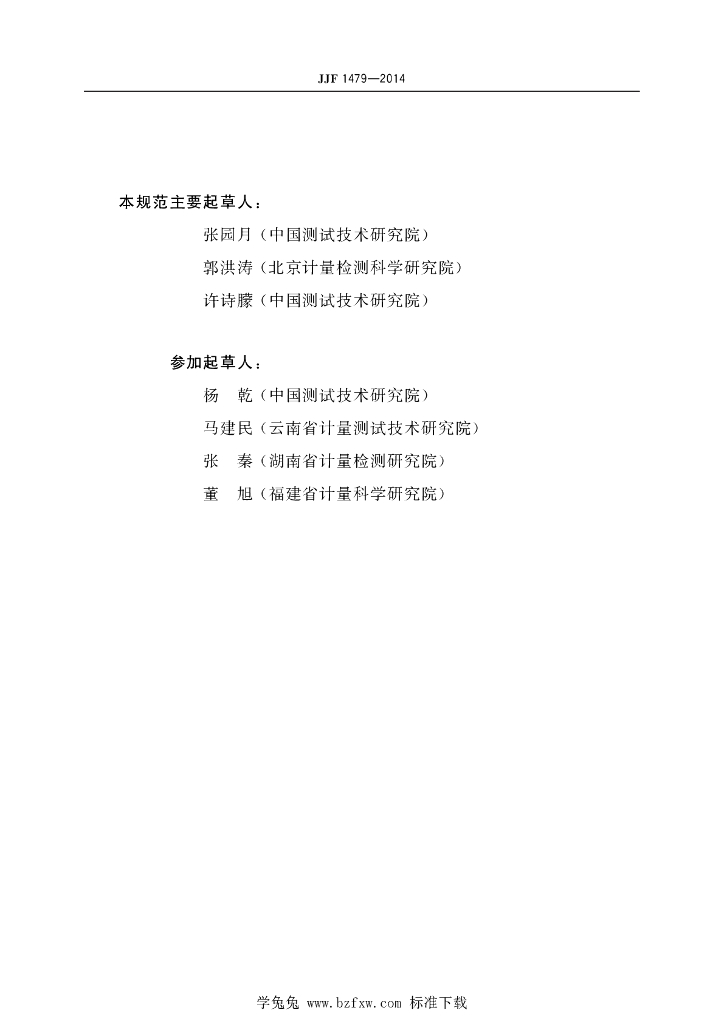 张园月(中国测试技术研究院)、郭洪涛(北京计量检测科学研究院)、许诗朦(中国测试技术研究院)、杨乾(中国测试技术研究院)、马建民(云南省计量测试技术研究院)、张秦(湖南省计量检测研究院)、董旭(福建省计量科学研究院)