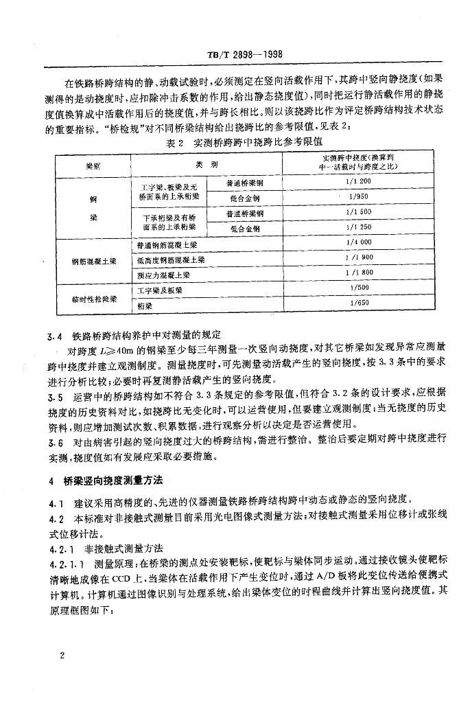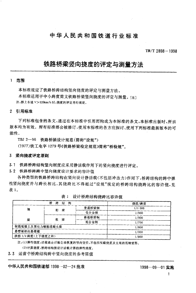 TB/T 2898-1998 铁路桥梁竖向挠度的评定与测量方法