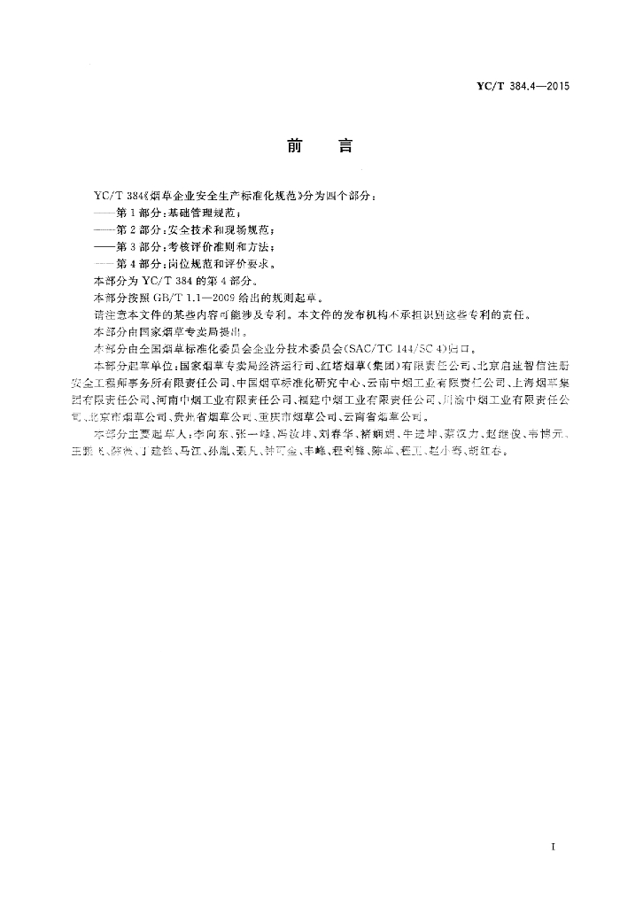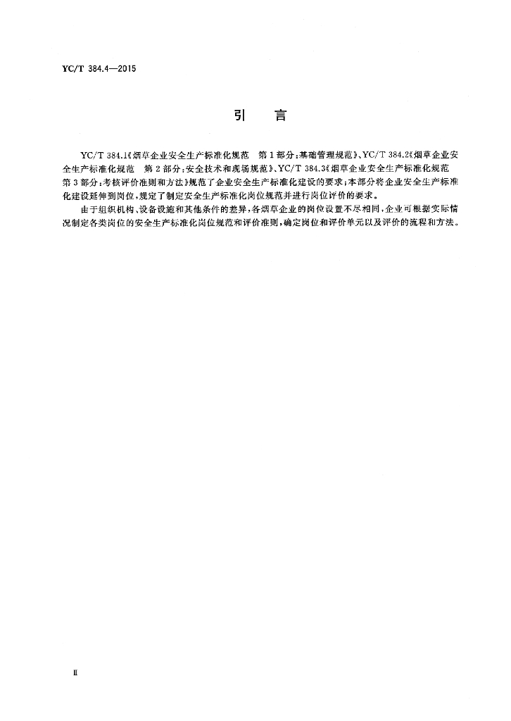 YC/T 384.4-2015 烟草企业安全生产标准化规范 第4部分:岗位规范和评价要求