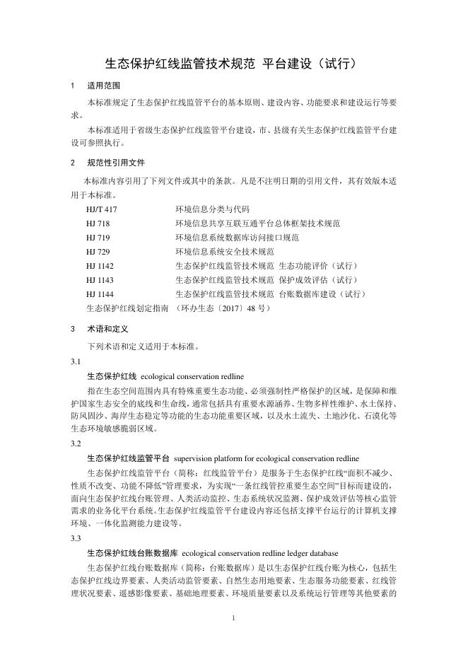 HJ 1146-2020 生态保护红线监管技术规范 平台建设(试行)