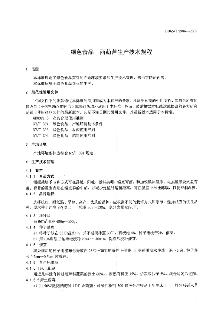 DB65/T 2986-2009 绿色食品 西葫芦生产技术规程