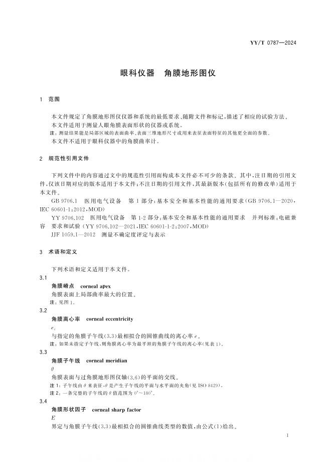 YY/T 0787-2024 眼科仪器 角膜地形图仪