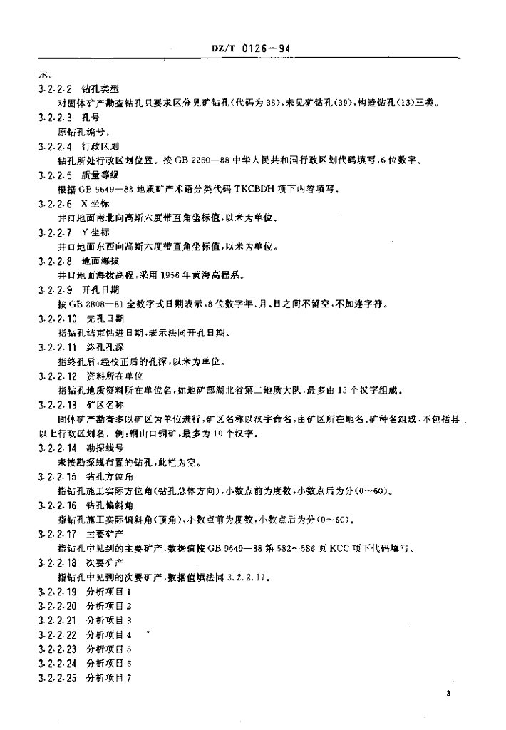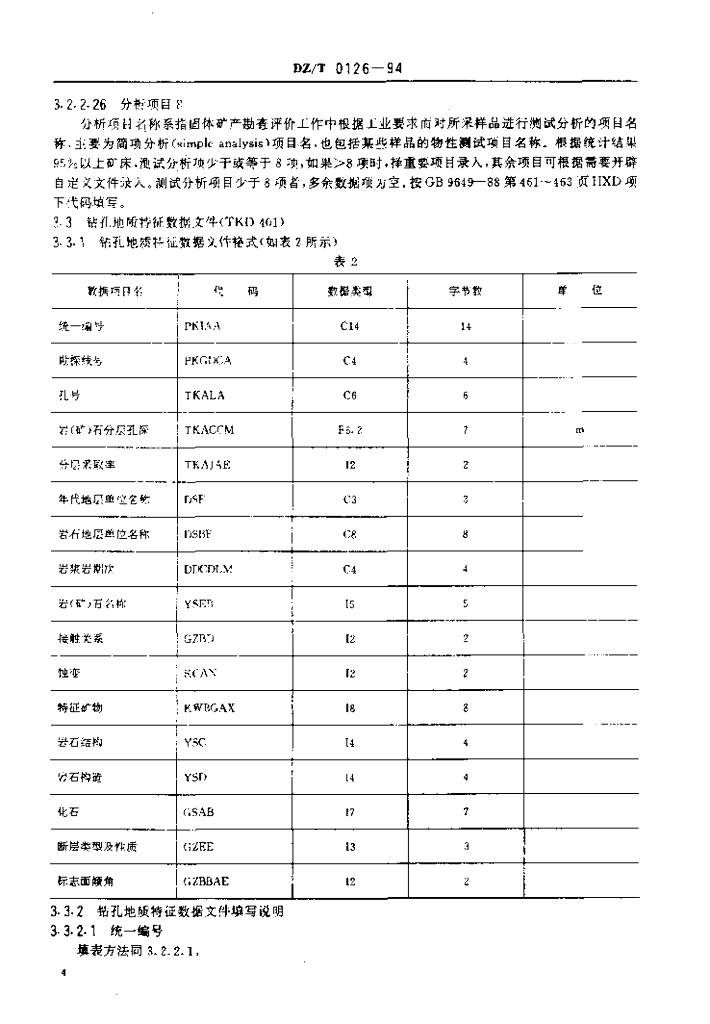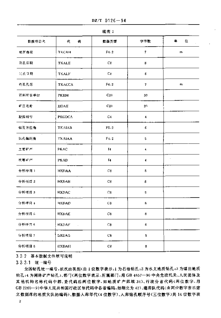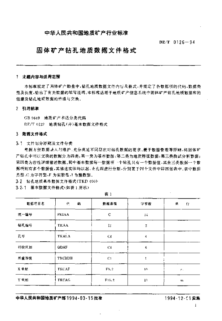 DZ/T 0126-1994 固体矿产钻孔地质数据文件格式