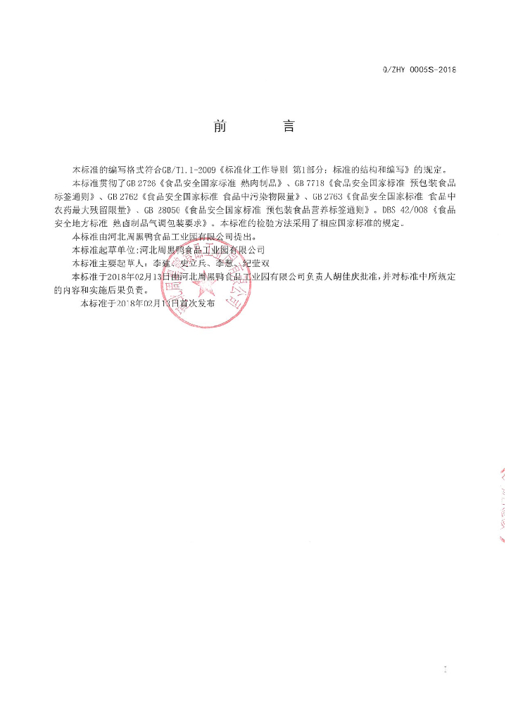 Q/ZHY 0005S-2018 气调包装熟卤肉制品