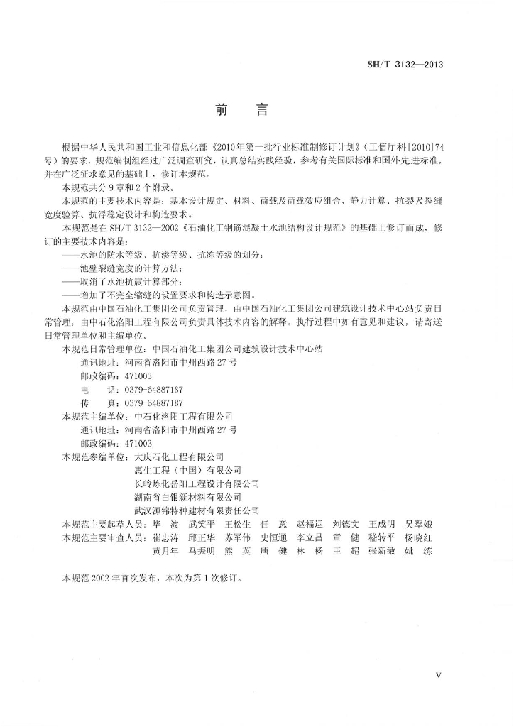 SH/T 3132-2013 石油化工钢筋混凝土水池结构设计规范