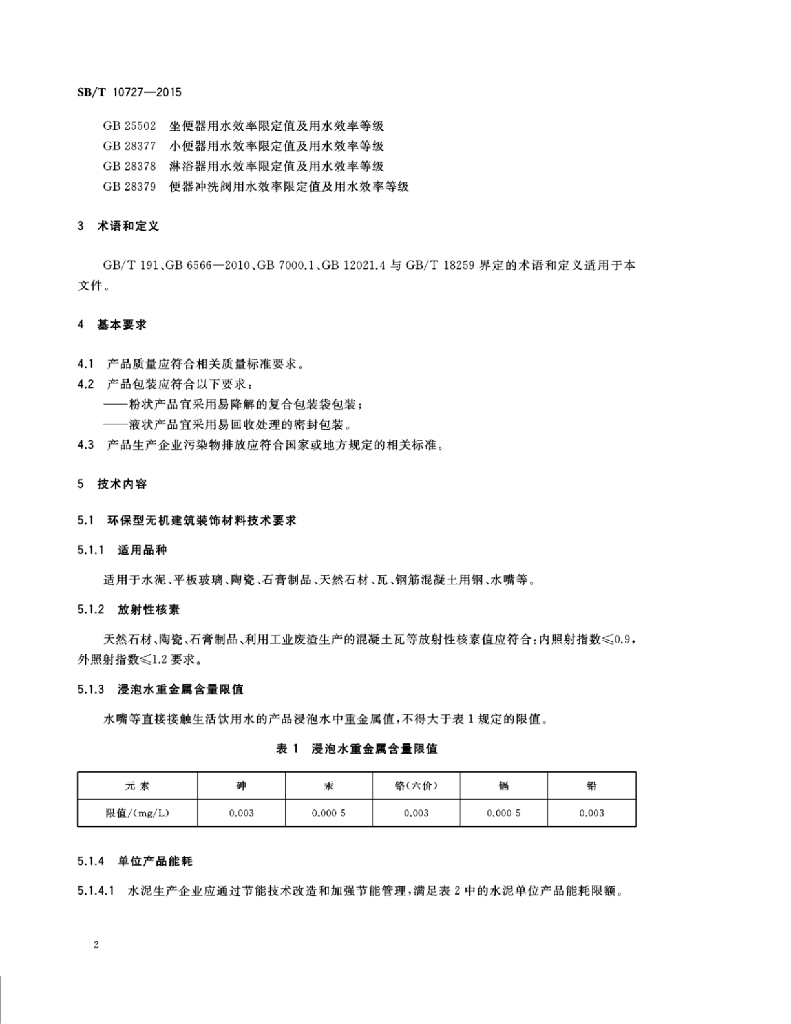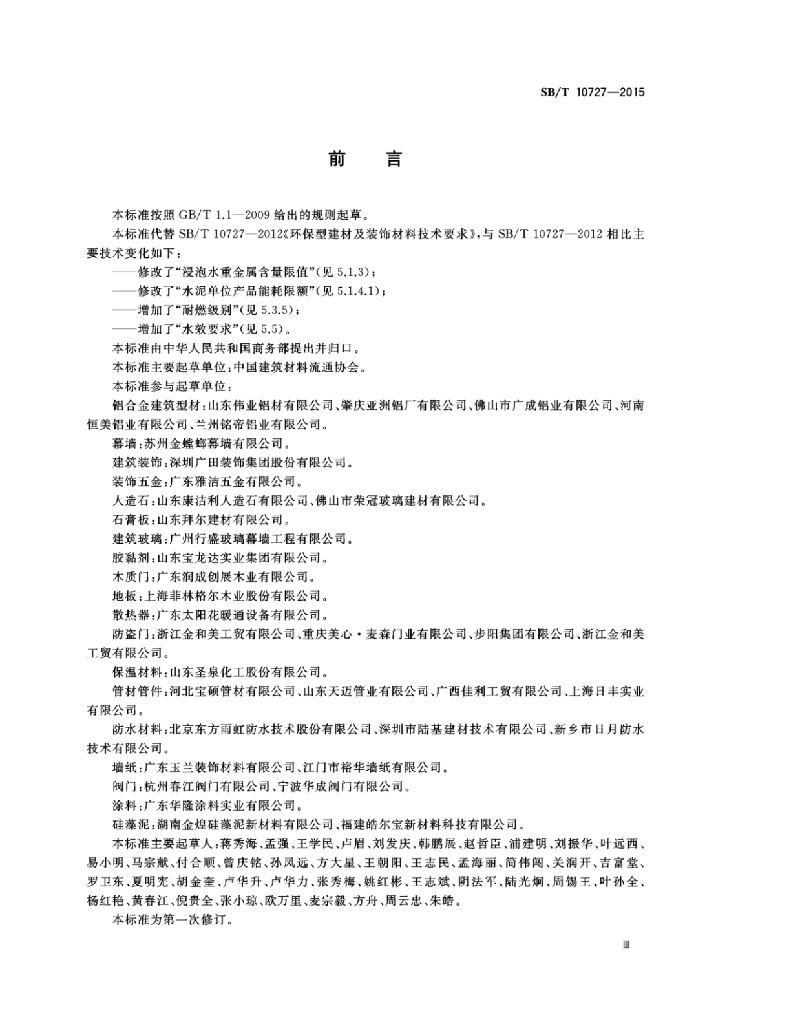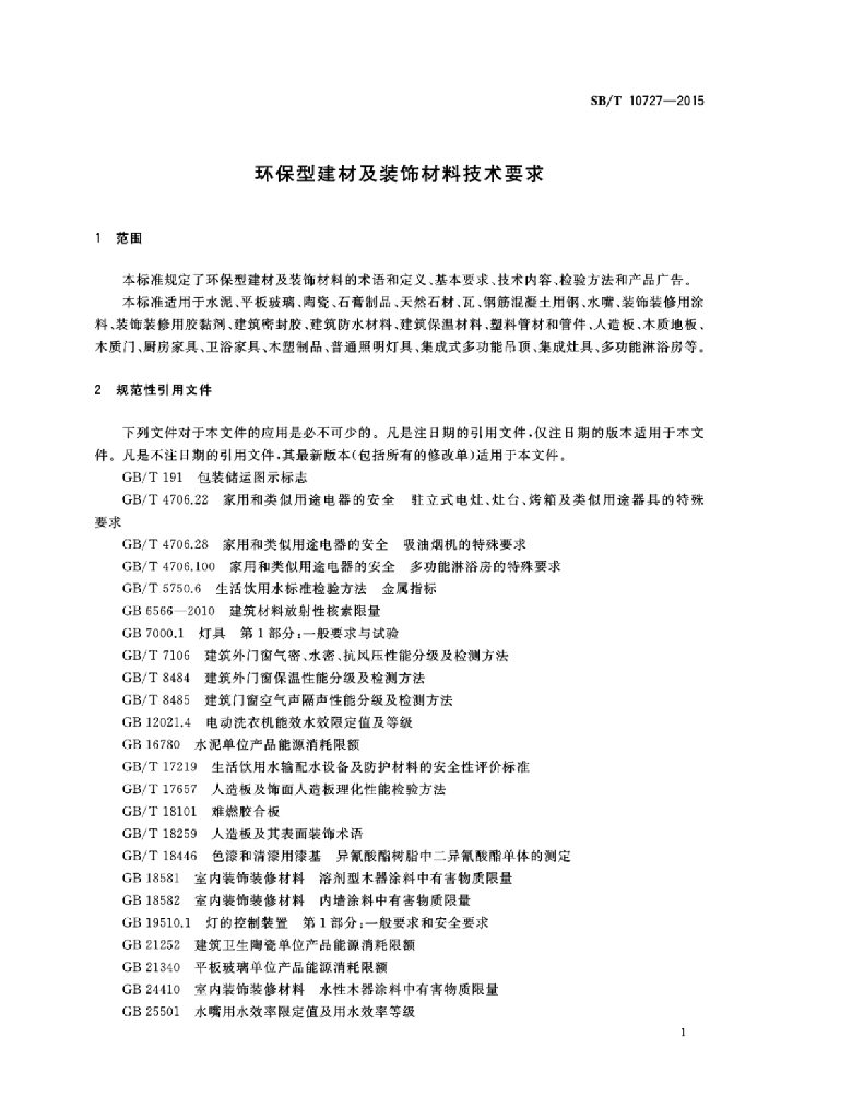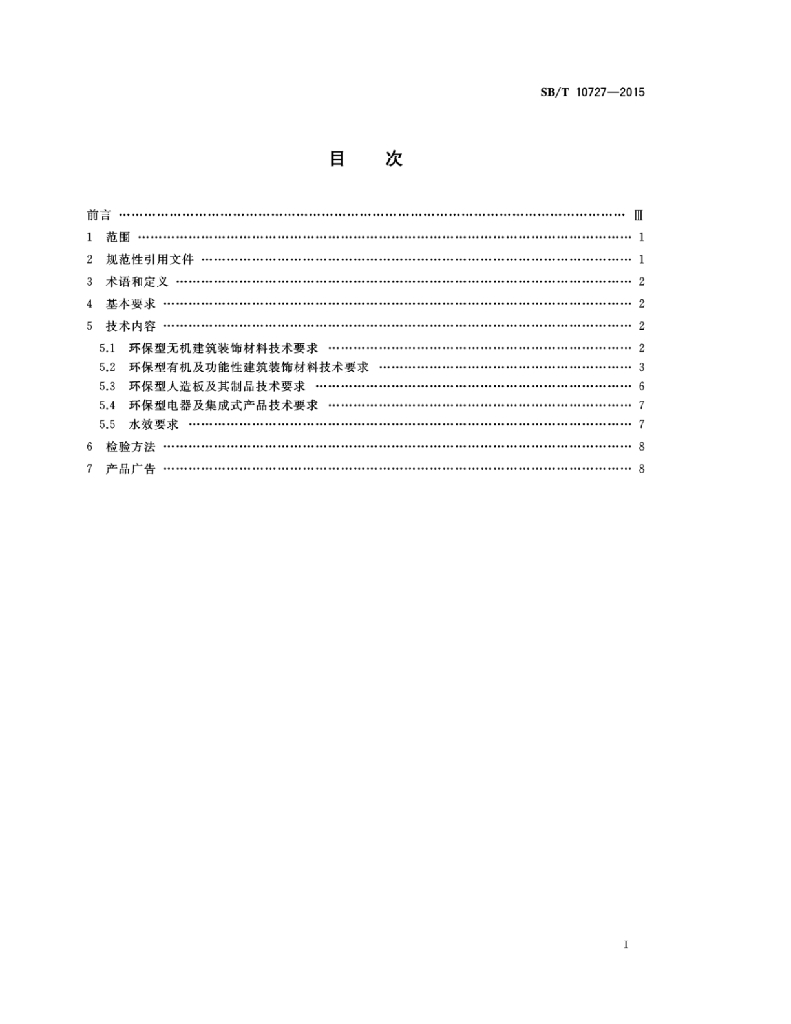 SB/T 10727-2015 环保型建材及装饰材料技术要求