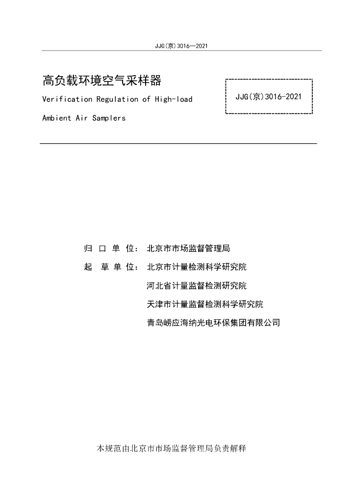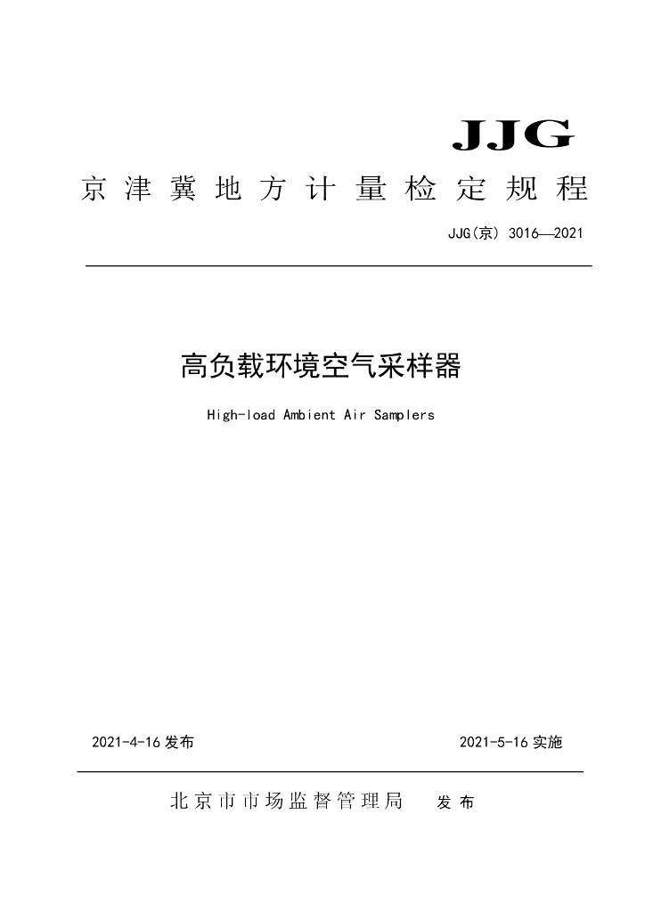 JJG(京)3016-2021 高负载环境空气采样器检定规程