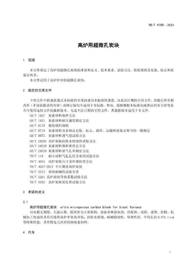 YB/T 4189-2024 高炉用超微孔炭块