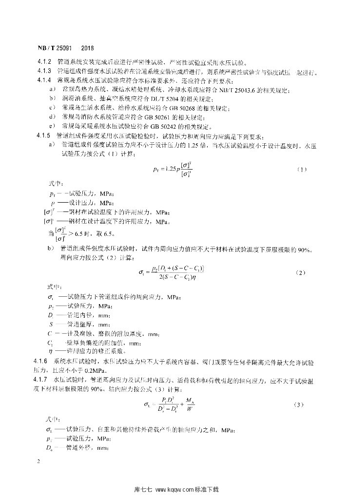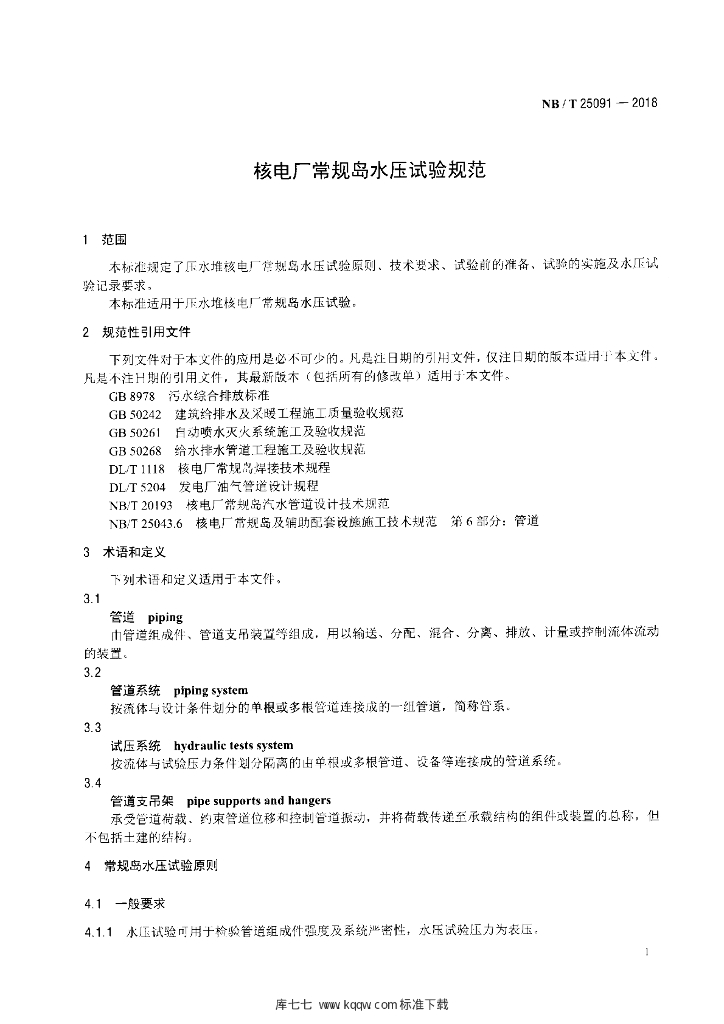 NB/T 25091-2018 核电厂常规岛水压试验规范