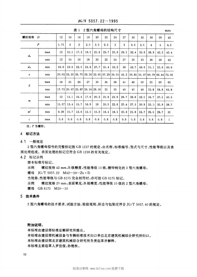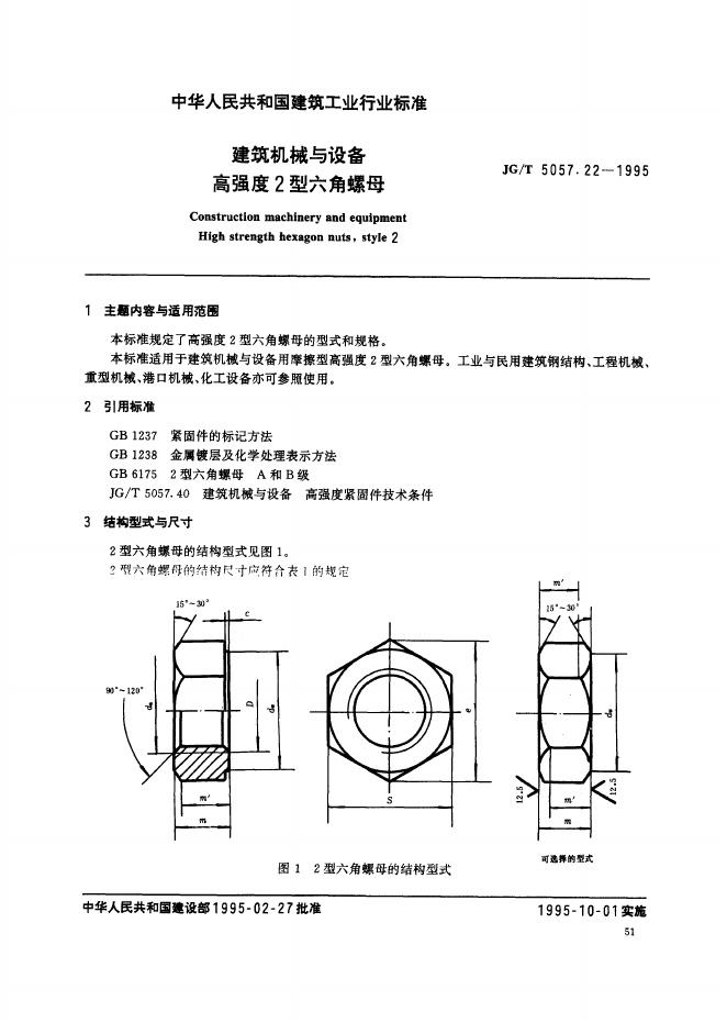 JG/T 5057.22-1995 建筑机械与设备 高强度2型六角螺母