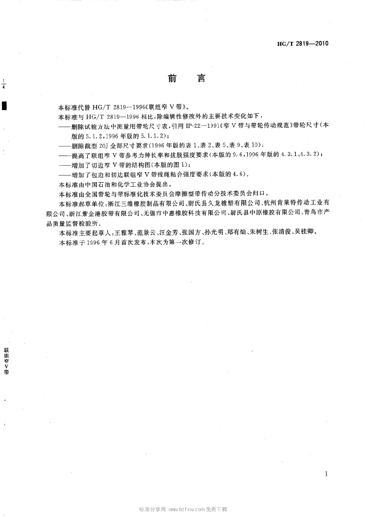 HG/T 2819-2010 代替 HG/T 2819-1996 联组窄 V 带