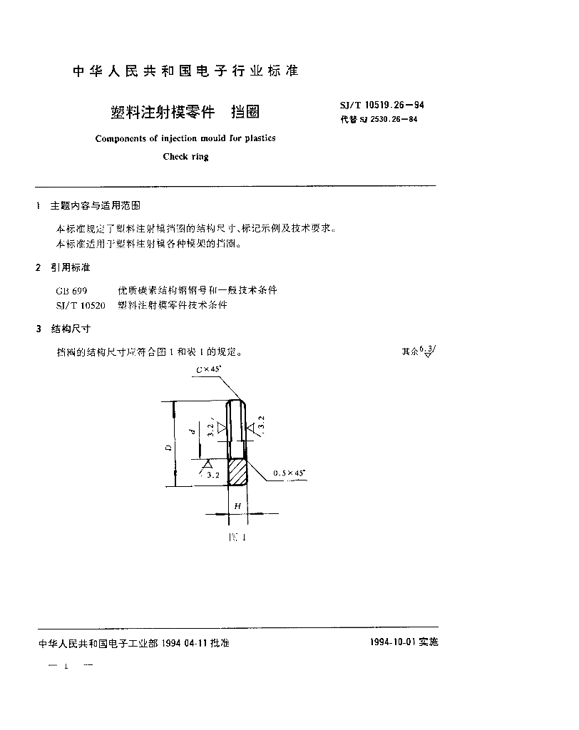 SJ/T 10519.26-1994 塑料注射模零件 挡圈