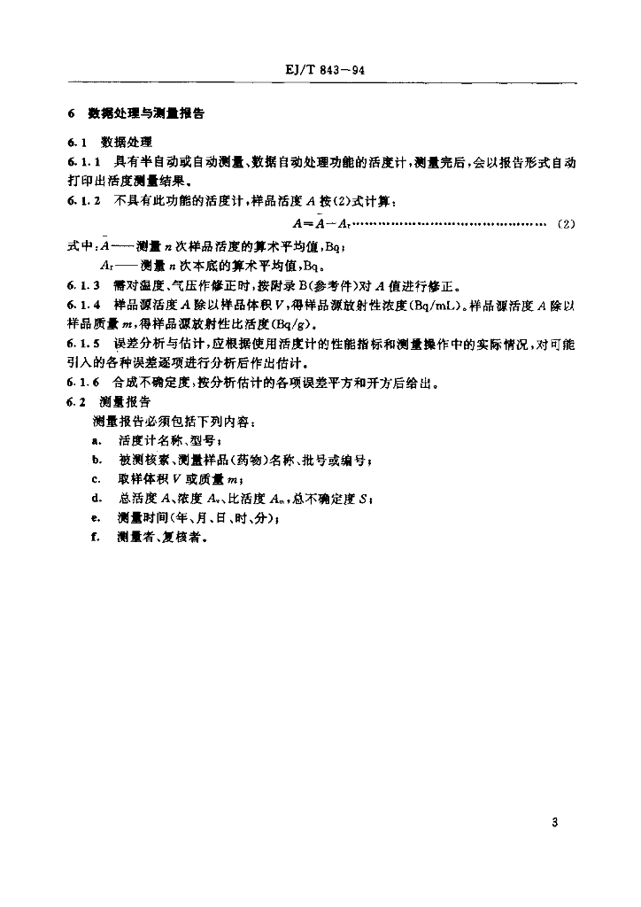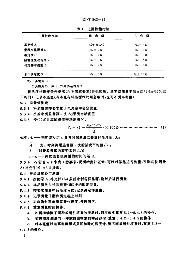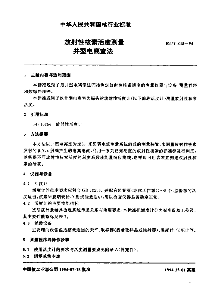 EJ/T 843-1994 放射性核素活度测量井型电离室法
