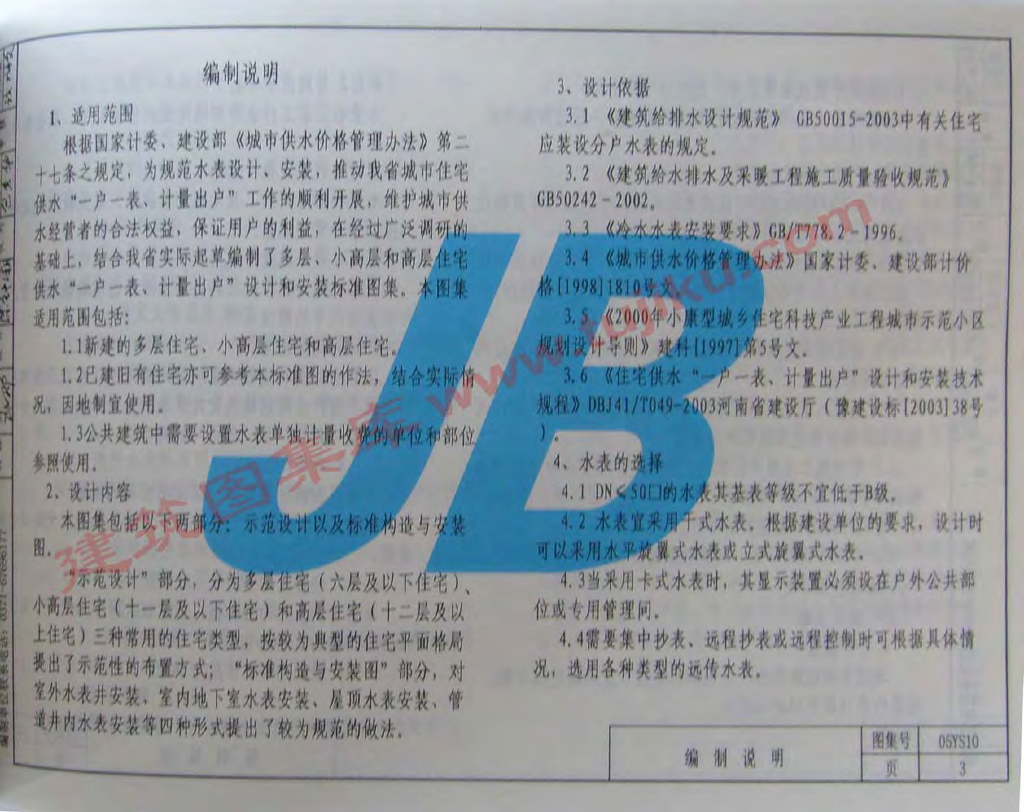 05YS10 住宅供水“一户一表、计量出户”设计和安装图集