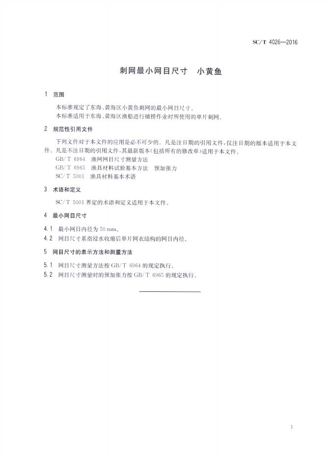 SC/T 4026-2016 刺网最小网目尺寸 小黄鱼