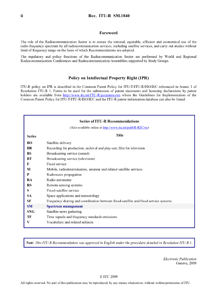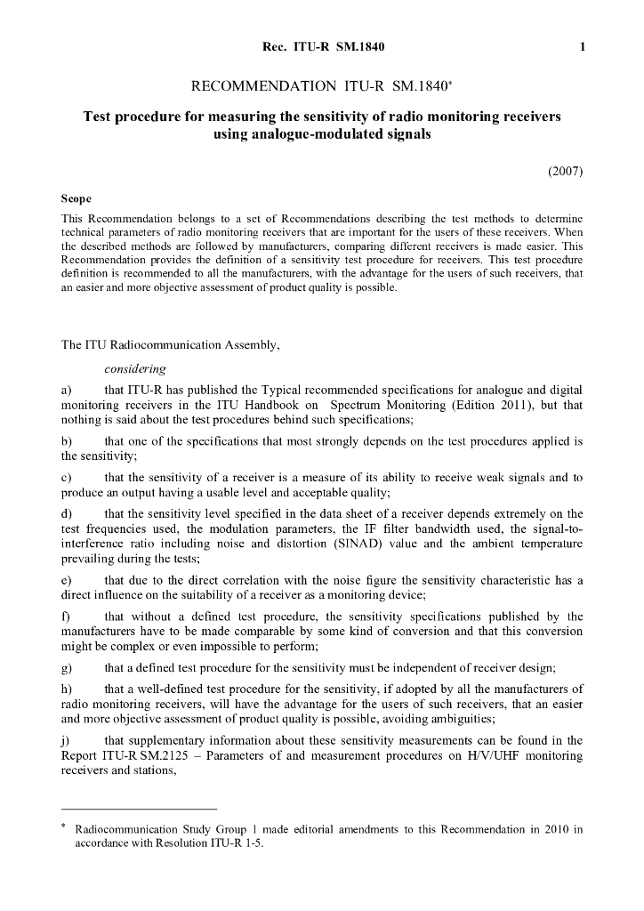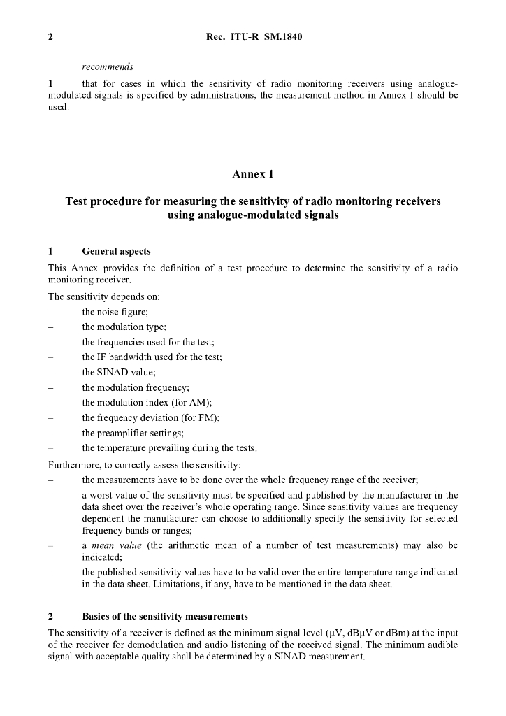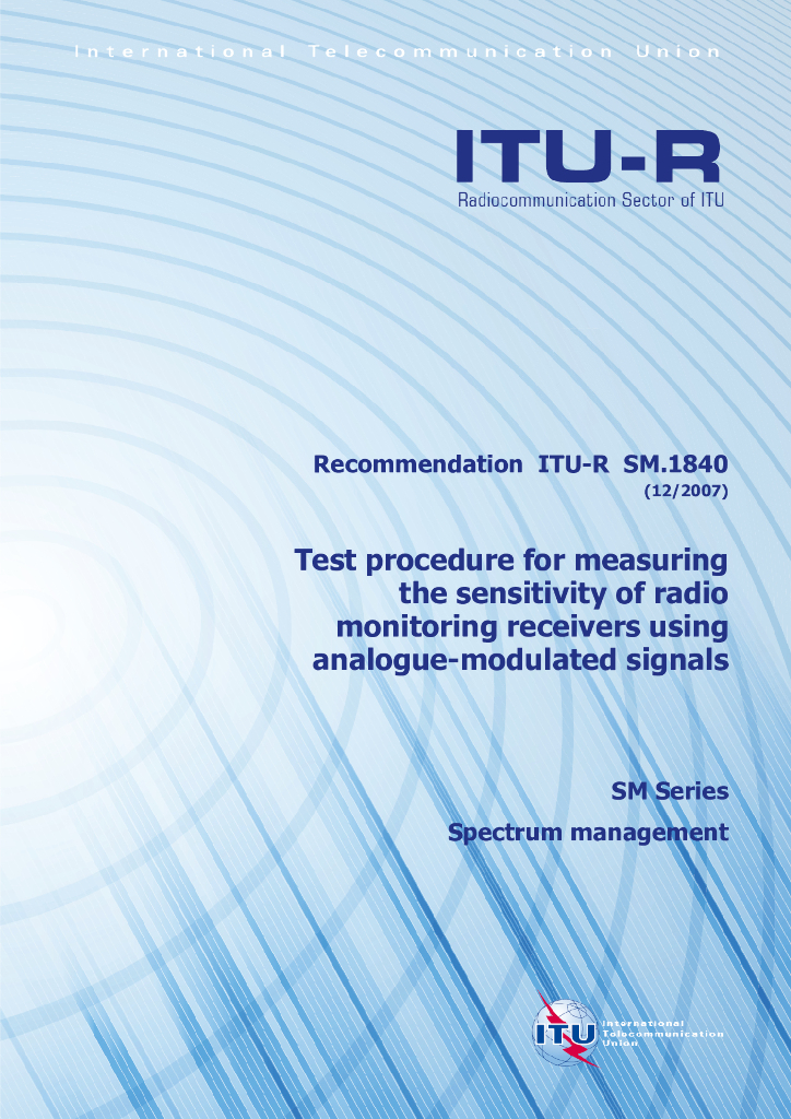 ITU-R SM.1840-2007 使用模拟调制信号的无线电监控接收器灵敏度测量的监测过程