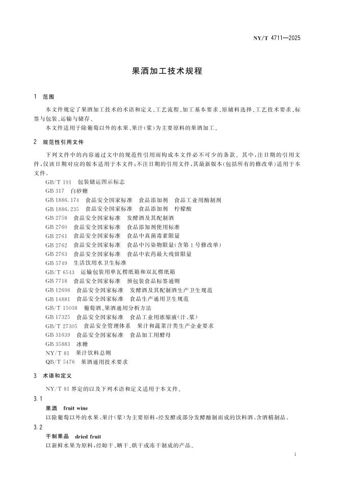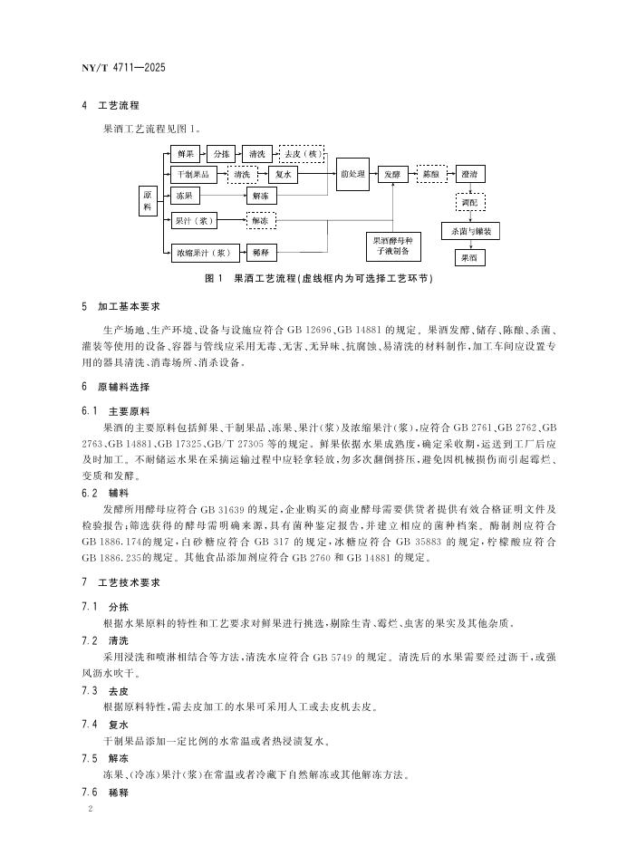 NY/T 4707-2025 果酒加工技术规程