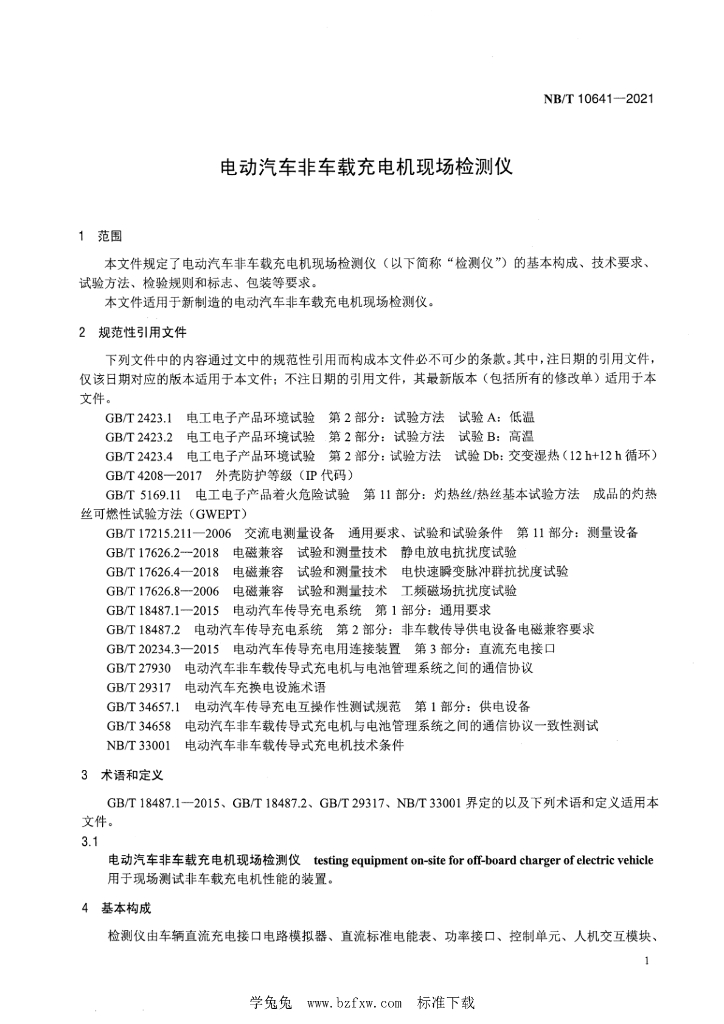 NB/T 10641-2021 电动汽车非车载充电机现场检测仪