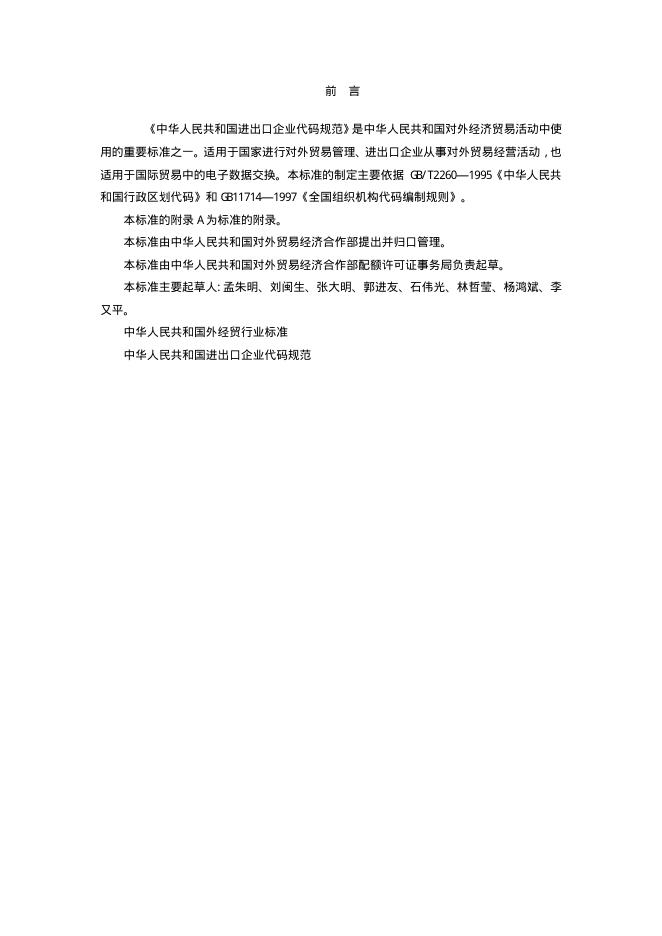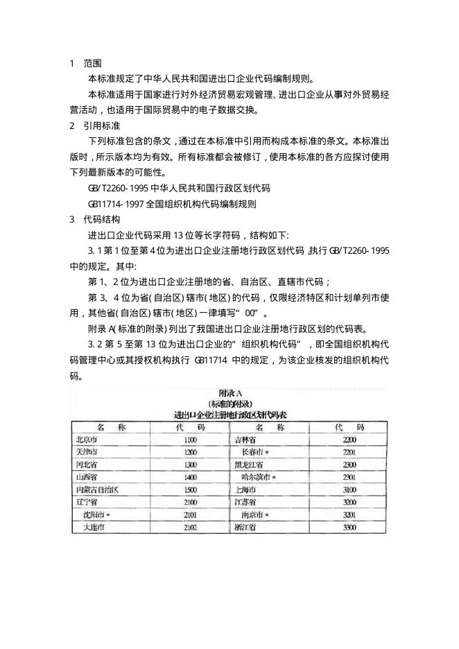 WM 1-1999 中华人民共和国进出口企业代码规范