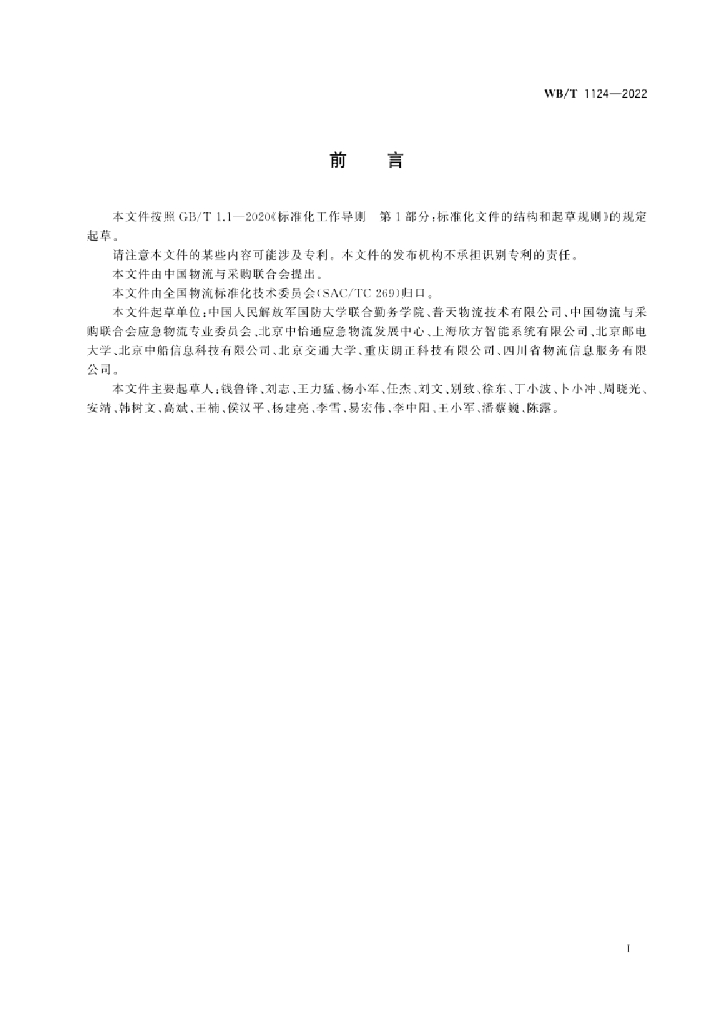 中国人民解放军国防大学联合勤务学院、普天物流技术有限公司、中国物流与采购联合会应急物流专业委员会、北京中怡通应急物流发展中心、上海欣方智能系统有限公司、北京邮电大学、北京中船信息科技有限公司、北京交通大学、重庆朗正科技有限公司、四川省物流信息服务有限公司