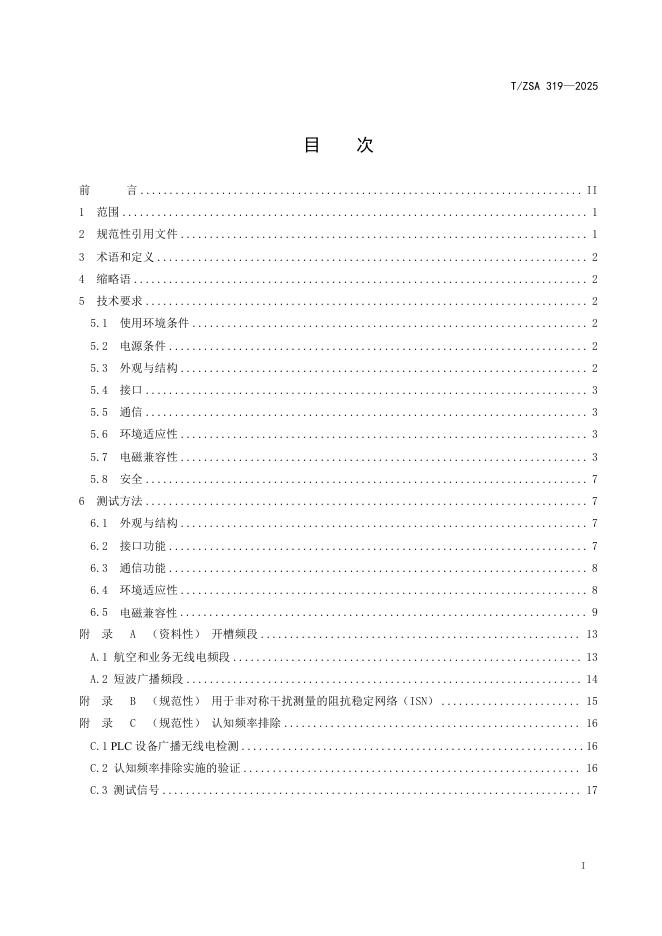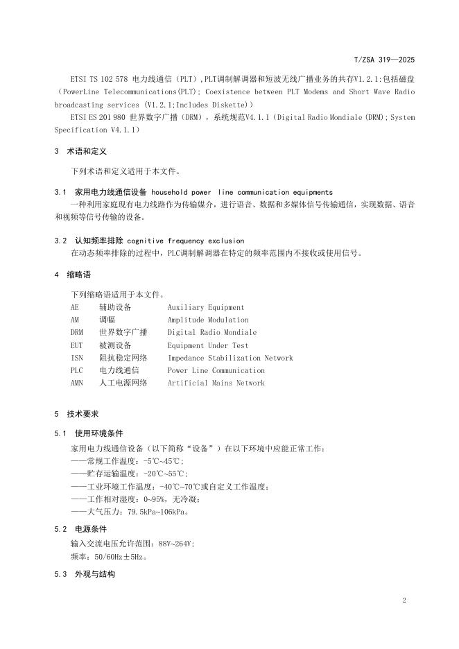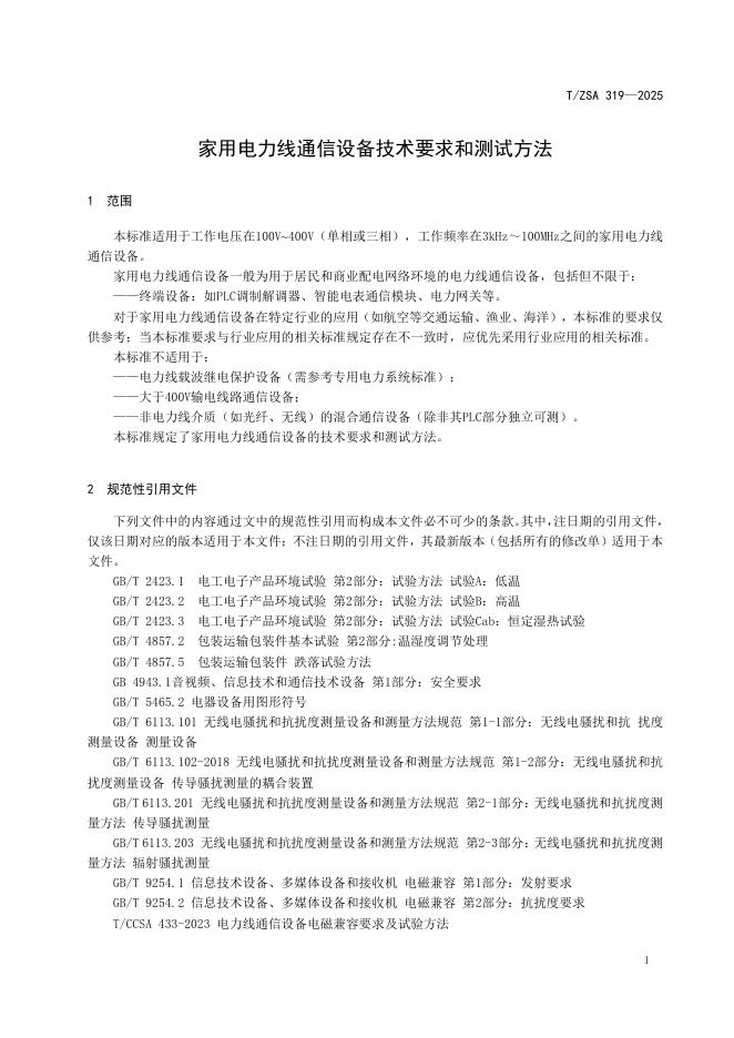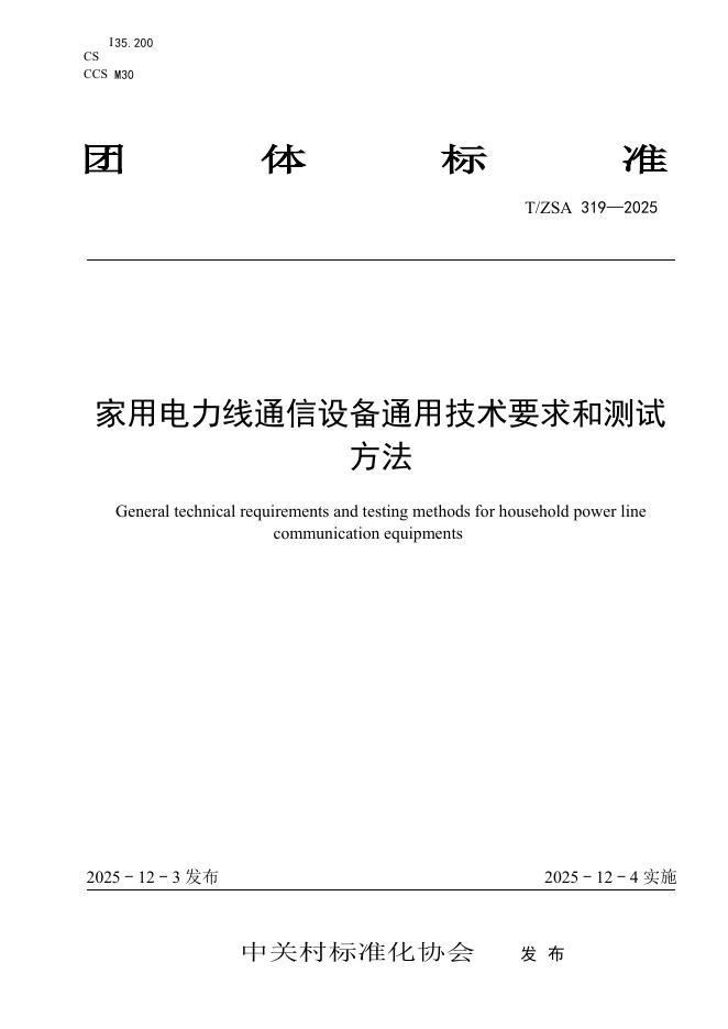 T/ZSA 319-2025 家用电力线通信设备通用技术要求和测试方法